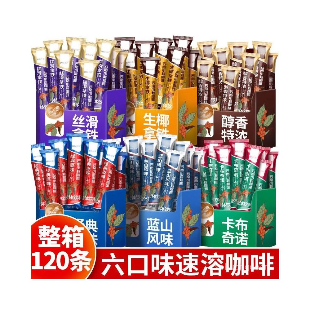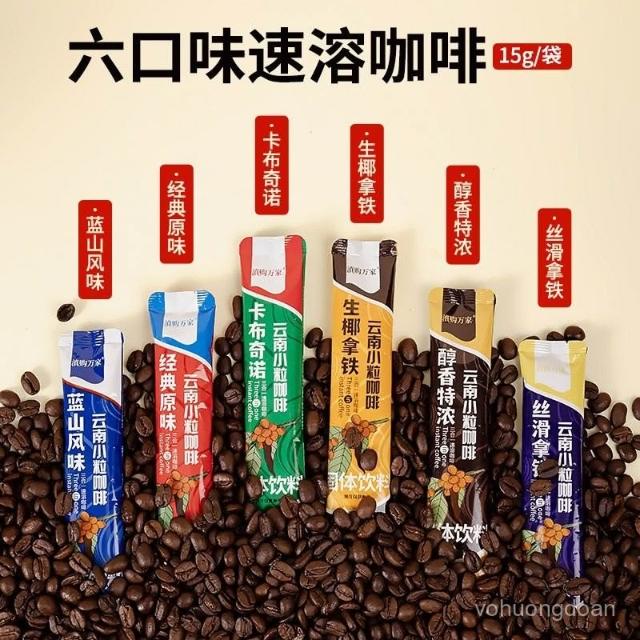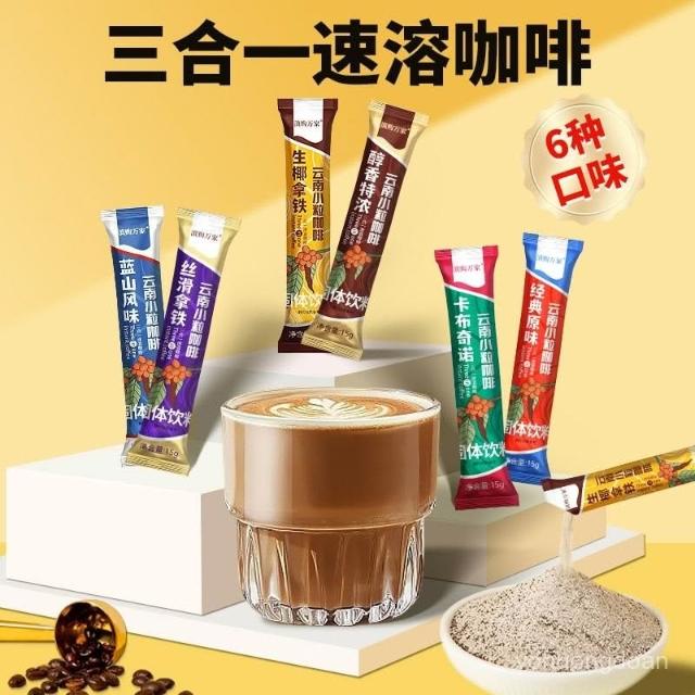 美美優選 雲南小粒咖啡三閤一速溶咖啡粉條裝生椰拿鐵藍山原味特濃整箱批髮