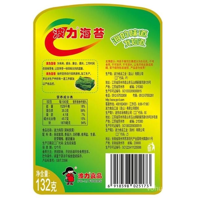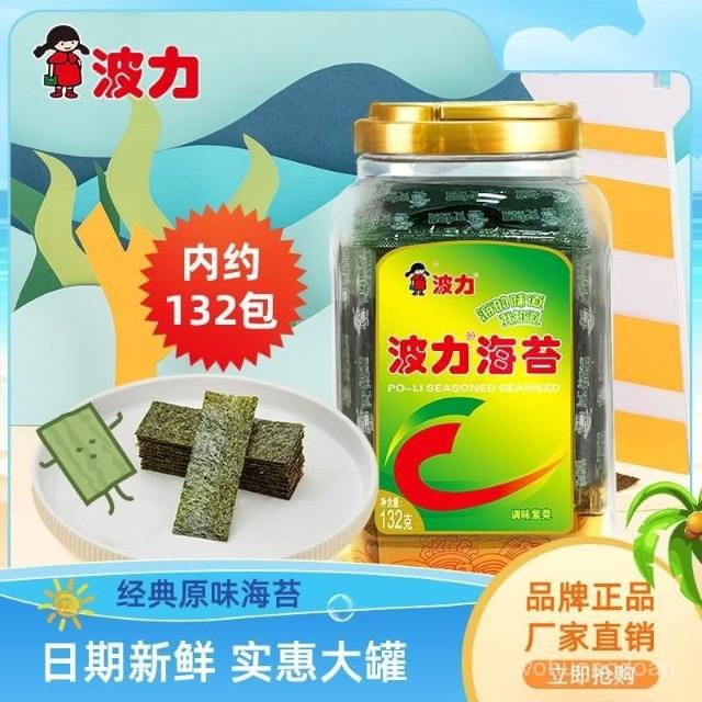 波力海苔132g原味桶裝罐裝條斑紫菜壽司卽食小喫零食獨立小包裝