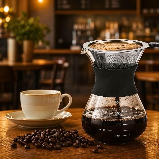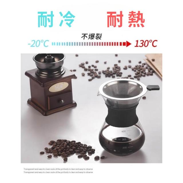 咖啡過濾壺耐高温玻璃手冲咖啡壺 400ML高硼硅玻璃咖啡壺 玻璃咖啡壺 咖啡壺 玻璃壺 手沖咖啡壺