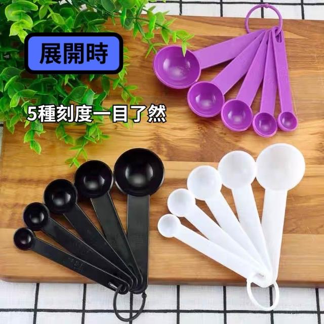 量勺五件組 帶刻度量勺 鹽勺 奶粉勺 廚房工具 烘焙用具 量匙 計量器 方便收納