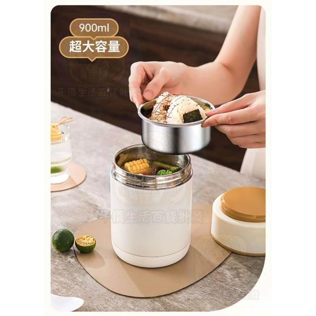 遊樂園生活選物 304保溫飯盒 900ML 分層式 附勺子 304不鏽鋼 提把式 便攜 露營 野餐 手機支架 大容量