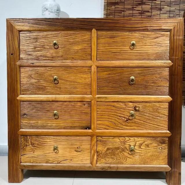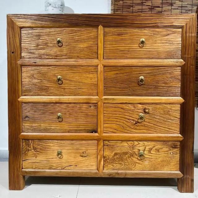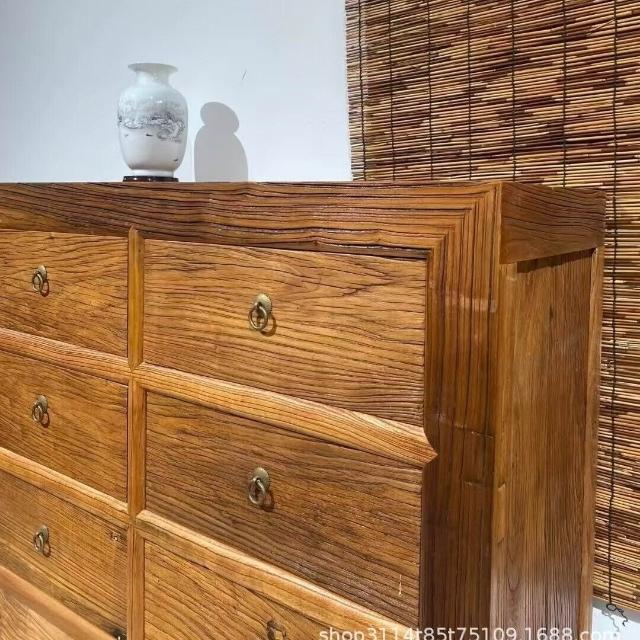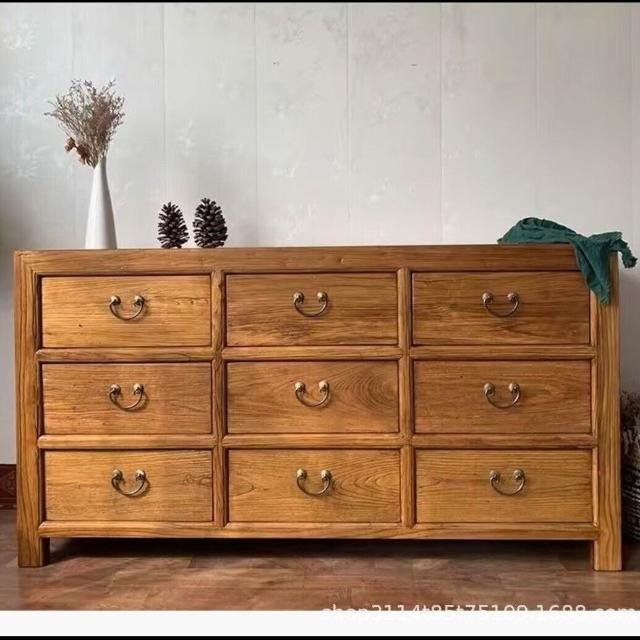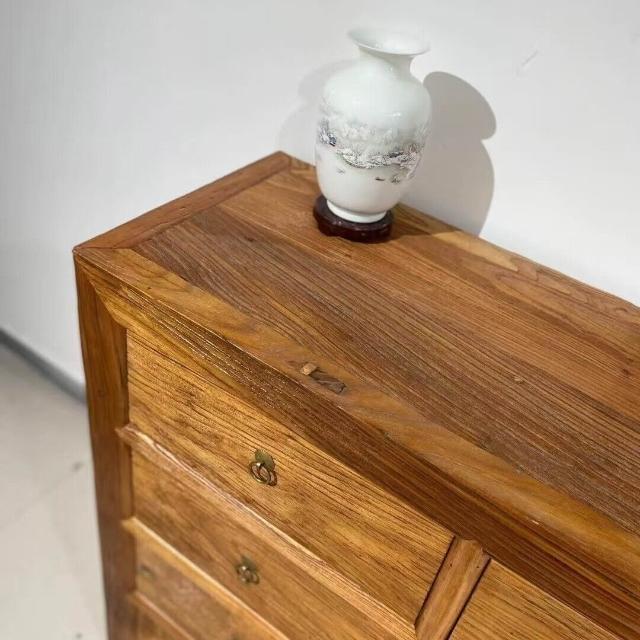 免運 免稅 新中式儲物收納櫃老榆木家具原木帶抽屜式餐邊鬥櫃家用靠墻置物櫃