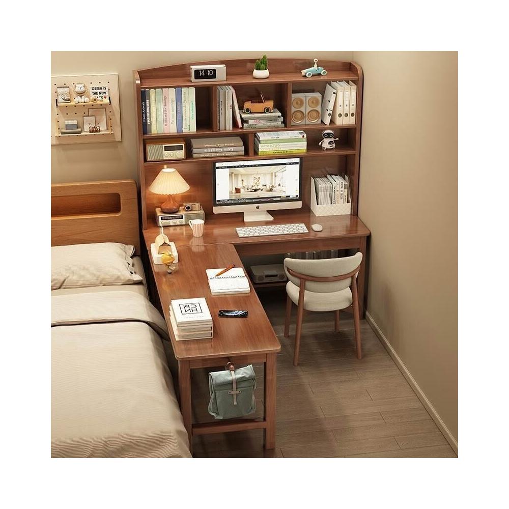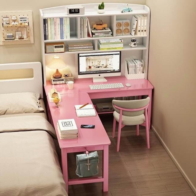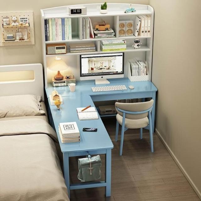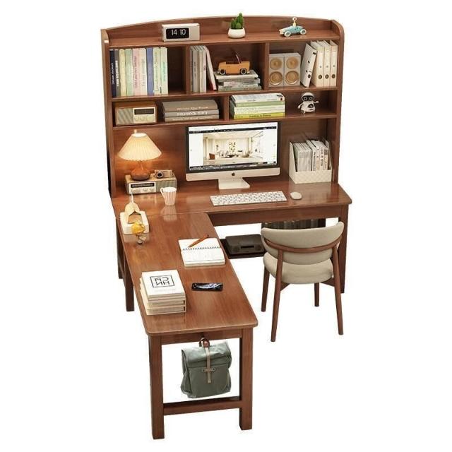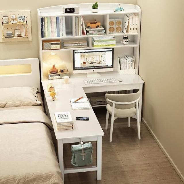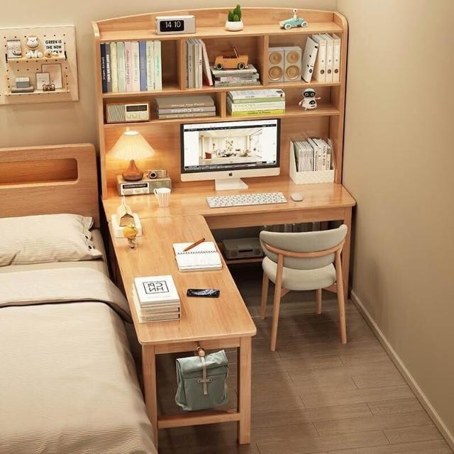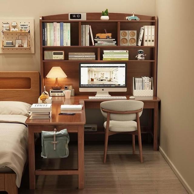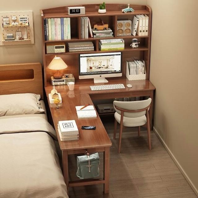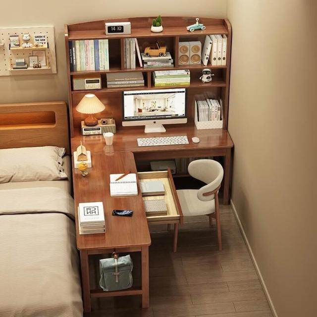 免運 免稅 實木轉角書桌書架一體桌臥室L型半包圍電腦桌書櫃組合寫字學習桌