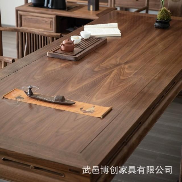 免運 免稅 新中式老榆木茶桌束腰馬蹄桌喝茶桌餐桌會議桌辦公寫字桌實木家具