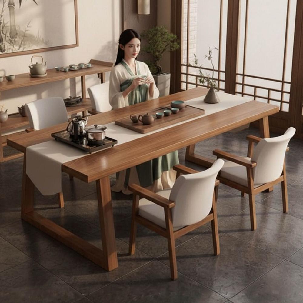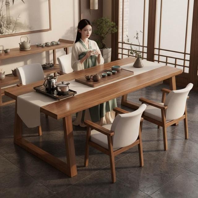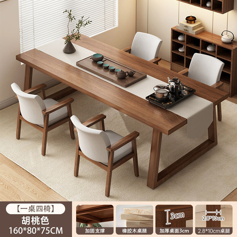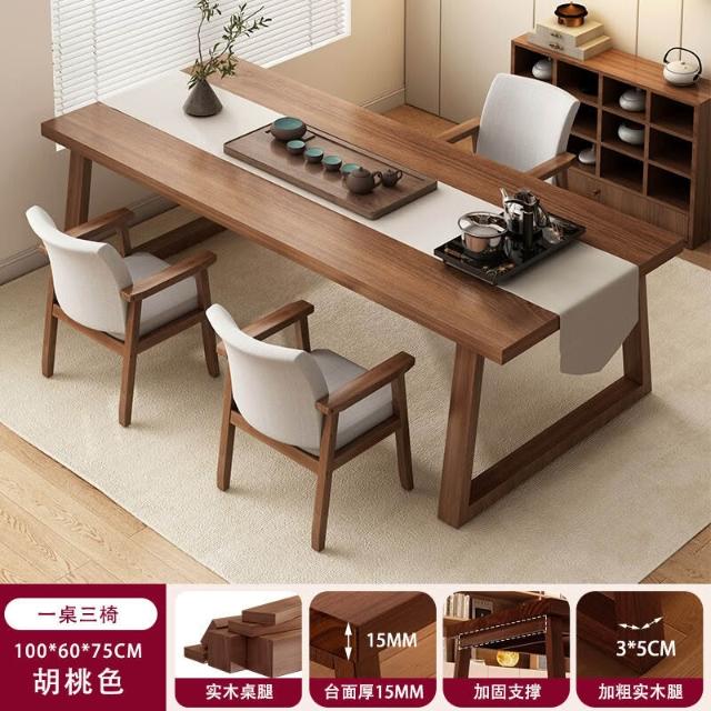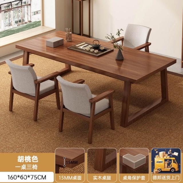 免運 免稅 茶桌椅組合新中式家用茶臺泡茶桌子辦公室簡約實木腿陽臺大板茶桌