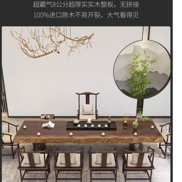 免運 免稅 新中式實木大板茶桌全套辦公室茶臺禅意功夫3米泡茶桌椅組合簡約