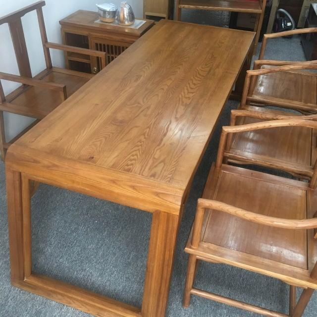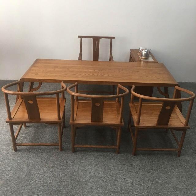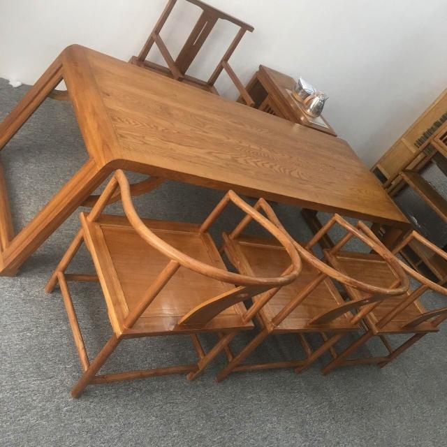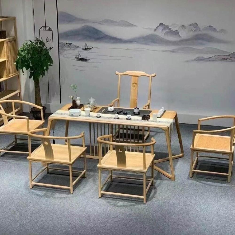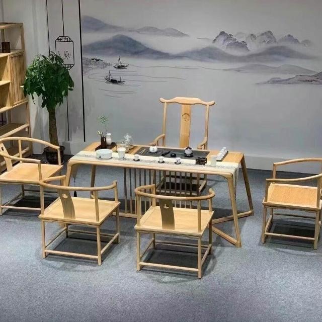 免運 免稅 新中式家具白蠟木茶桌椅組合實木茶櫃胡桃色仿古書櫃客廳接待茶幾