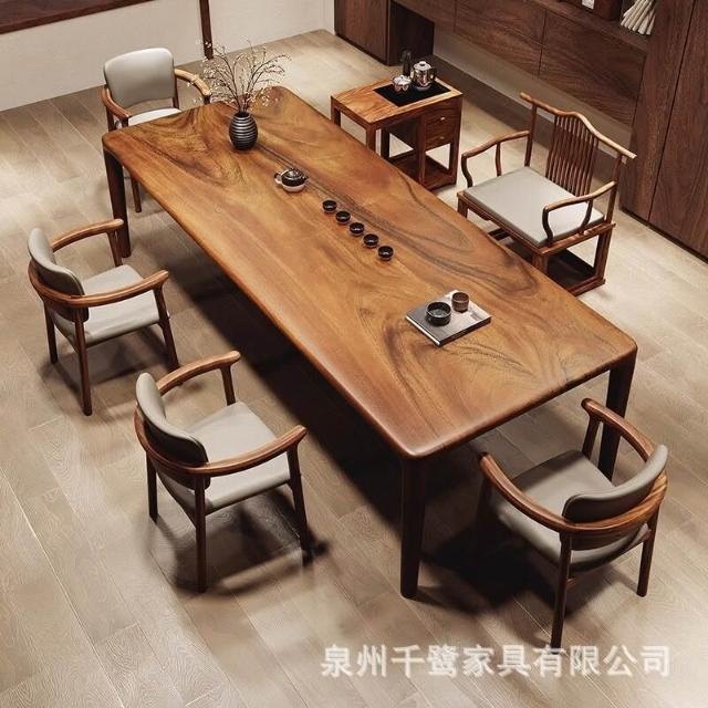 免運 免稅 高檔南美胡桃木卯榫茶桌椅客廳家用大板茶臺陽臺新中式辦公室茶幾