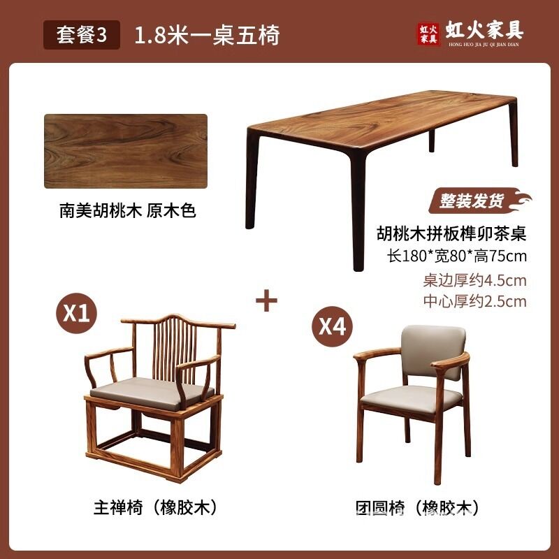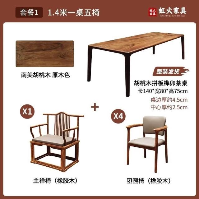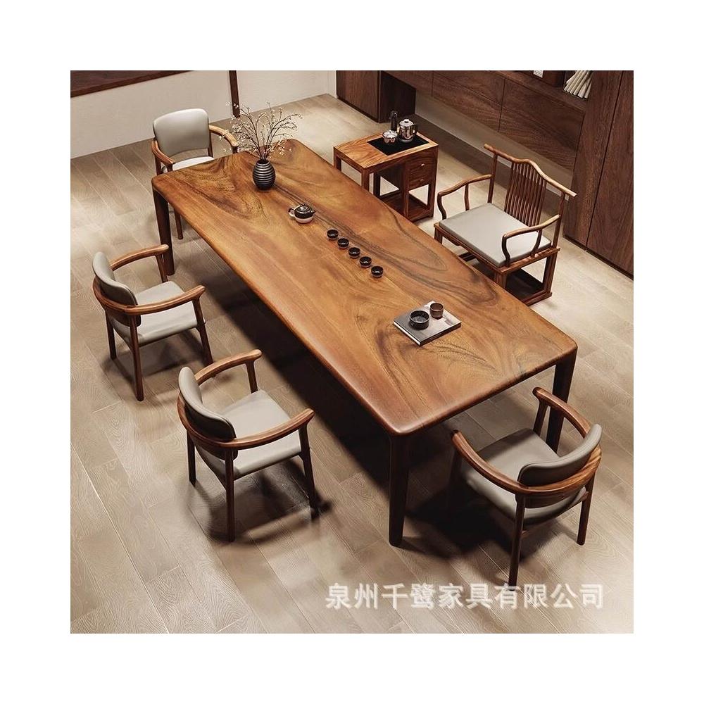 免運 免稅 高檔南美胡桃木卯榫茶桌椅客廳家用大板茶臺陽臺新中式辦公室茶幾