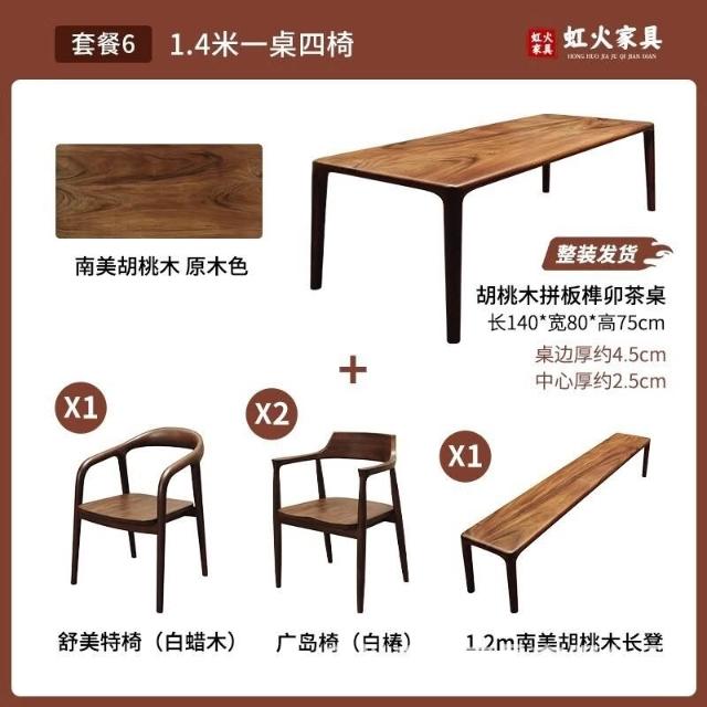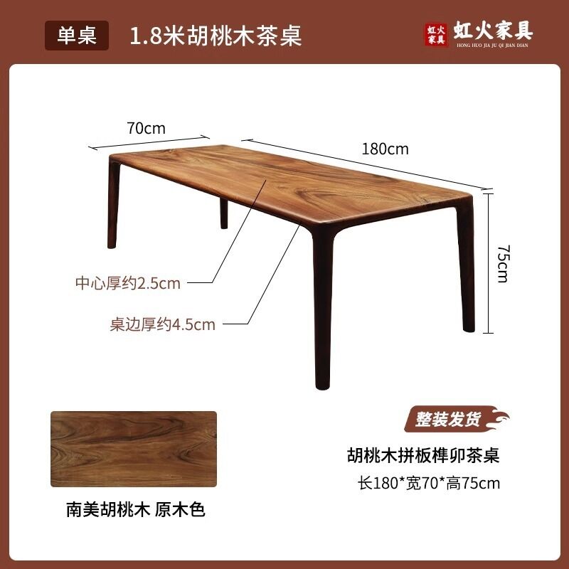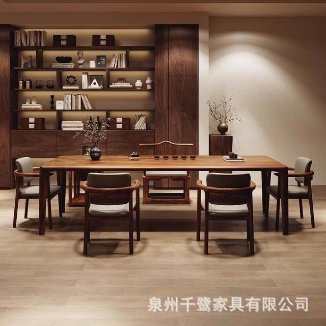 免運 免稅 高檔南美胡桃木卯榫茶桌椅客廳家用大板茶臺陽臺新中式辦公室茶幾