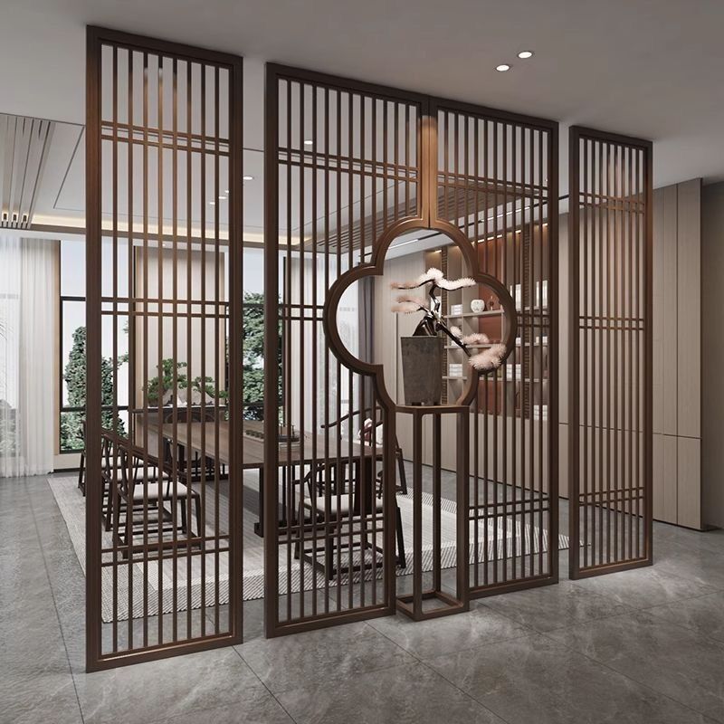 免運 免稅 新中式屏風隔斷實木格柵入戶客廳玄關進門遮擋辦公室镂空花格定製
