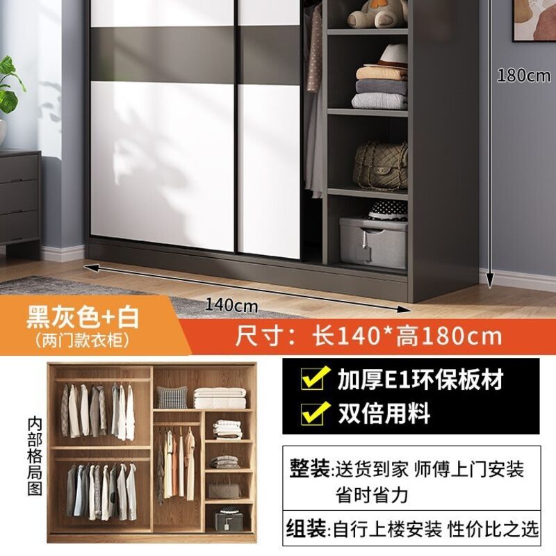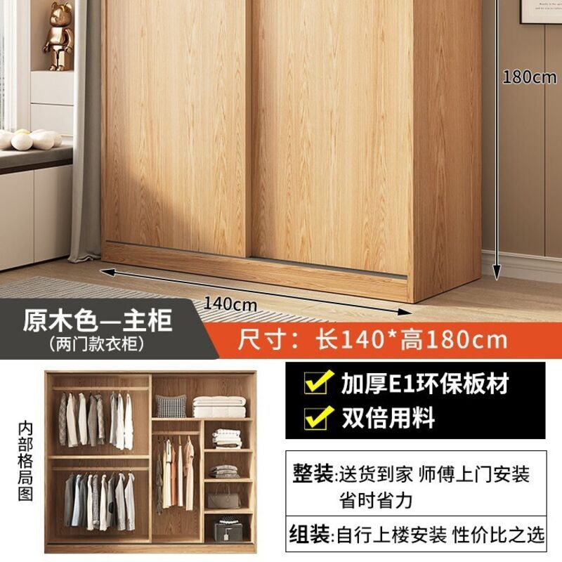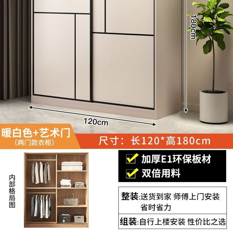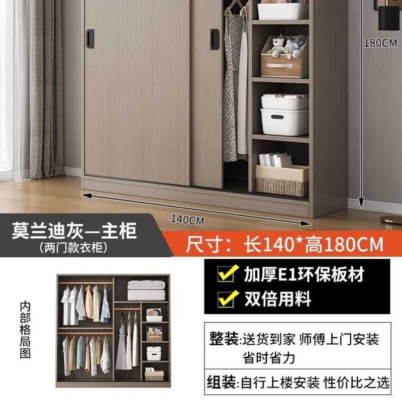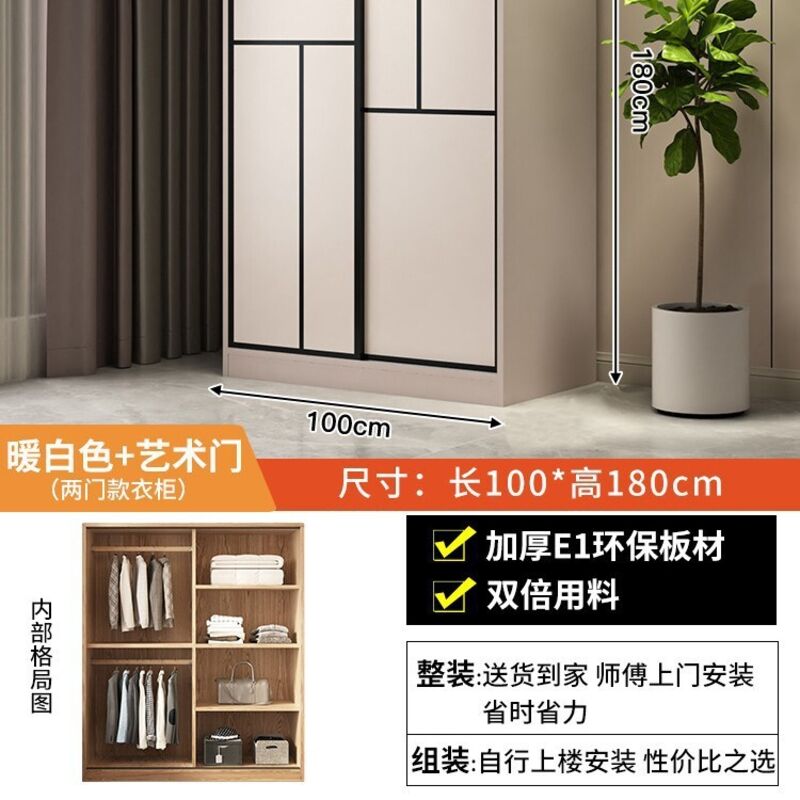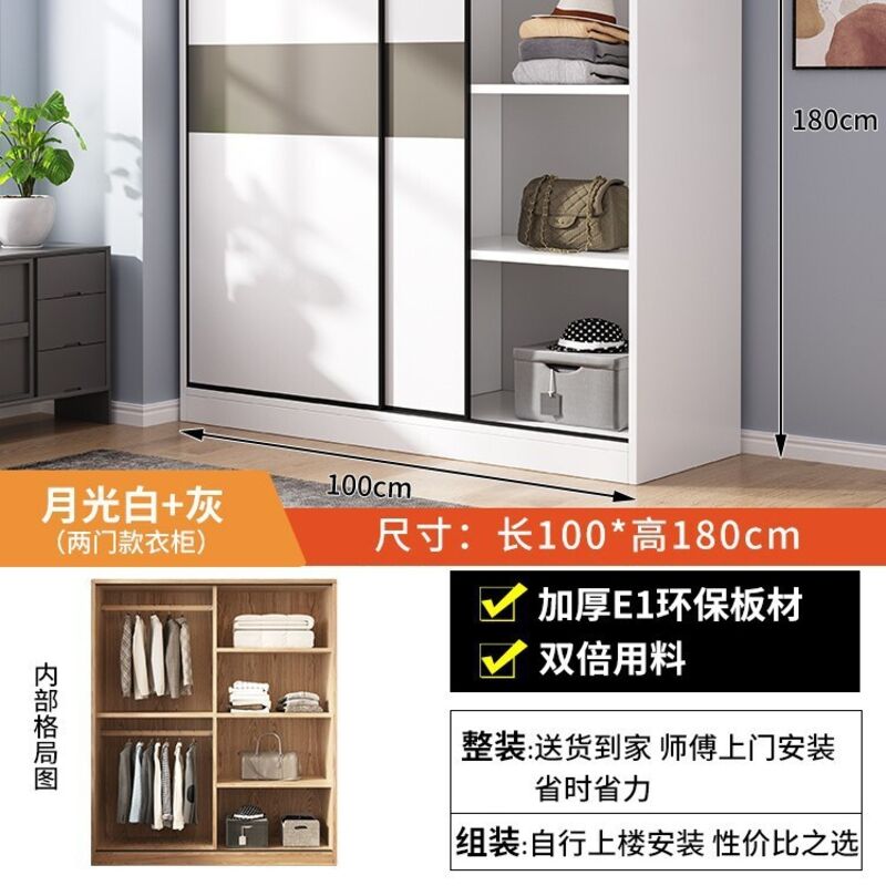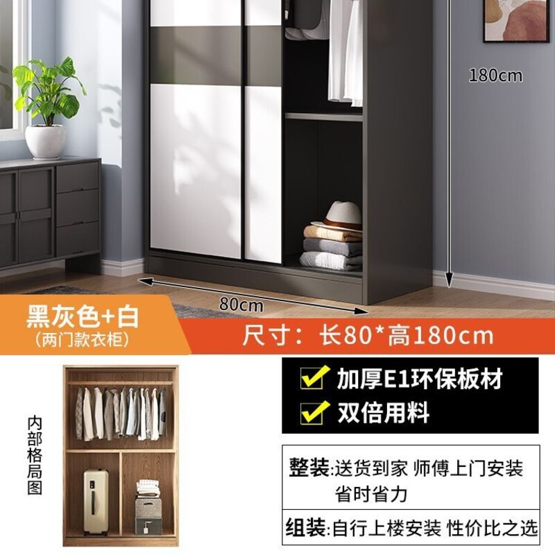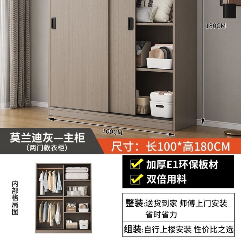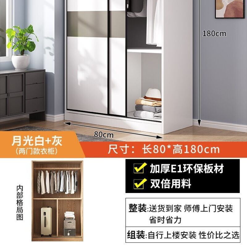 免運 免稅 推拉門簡易衣櫃家用臥室木質經濟出租房小戶型收納儲物掛衣櫥