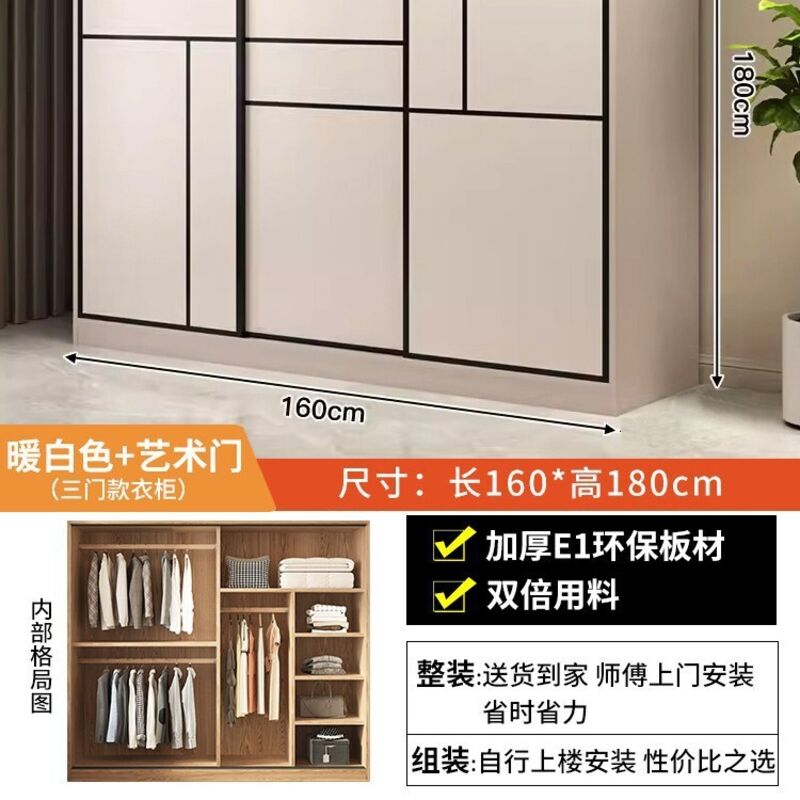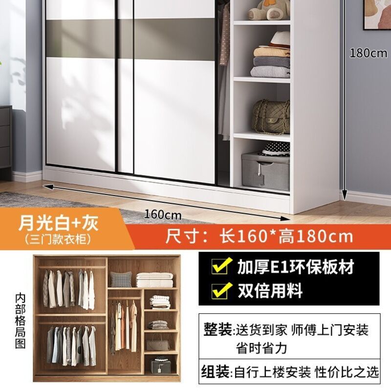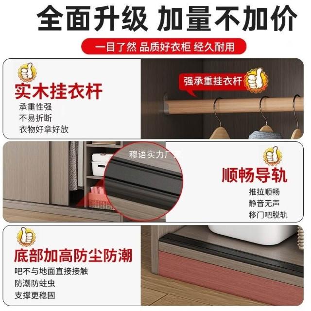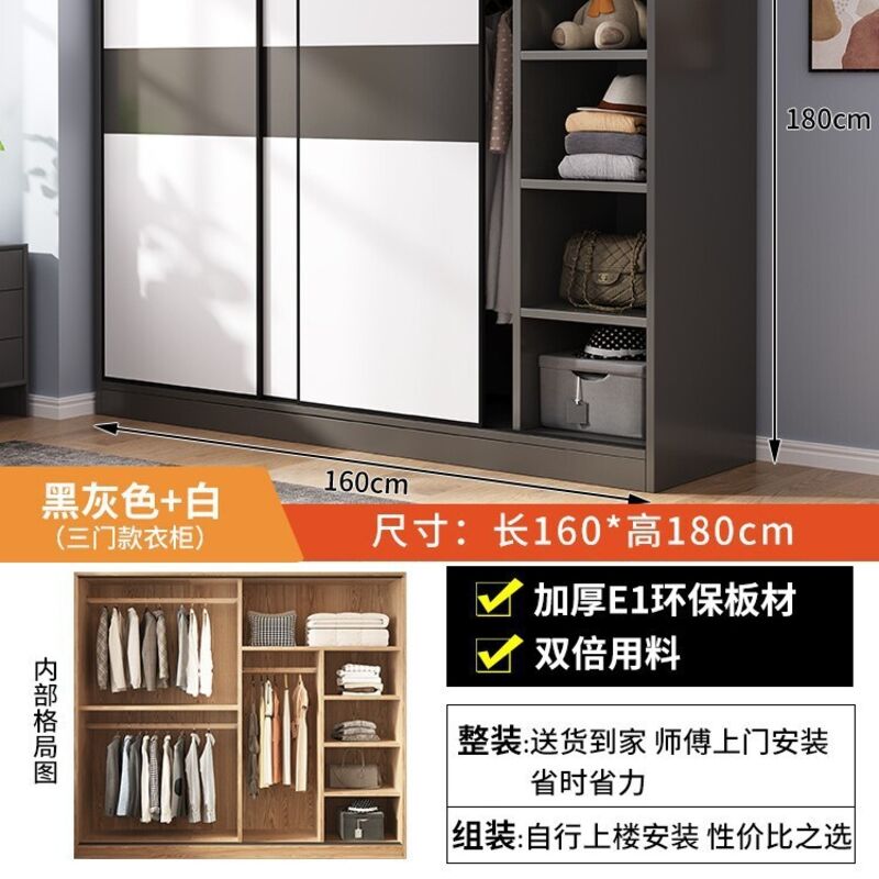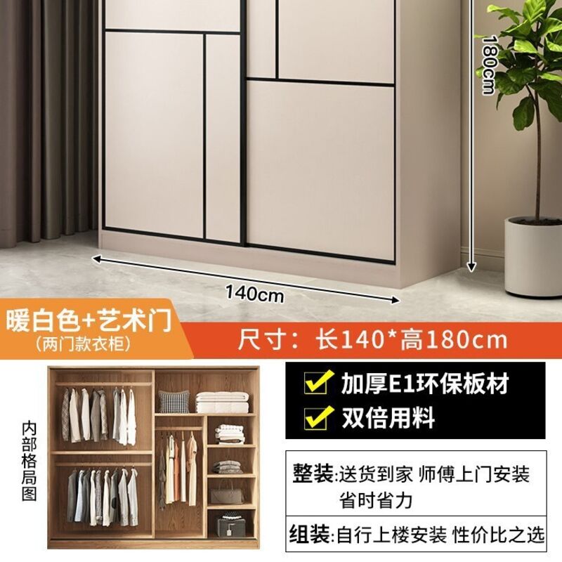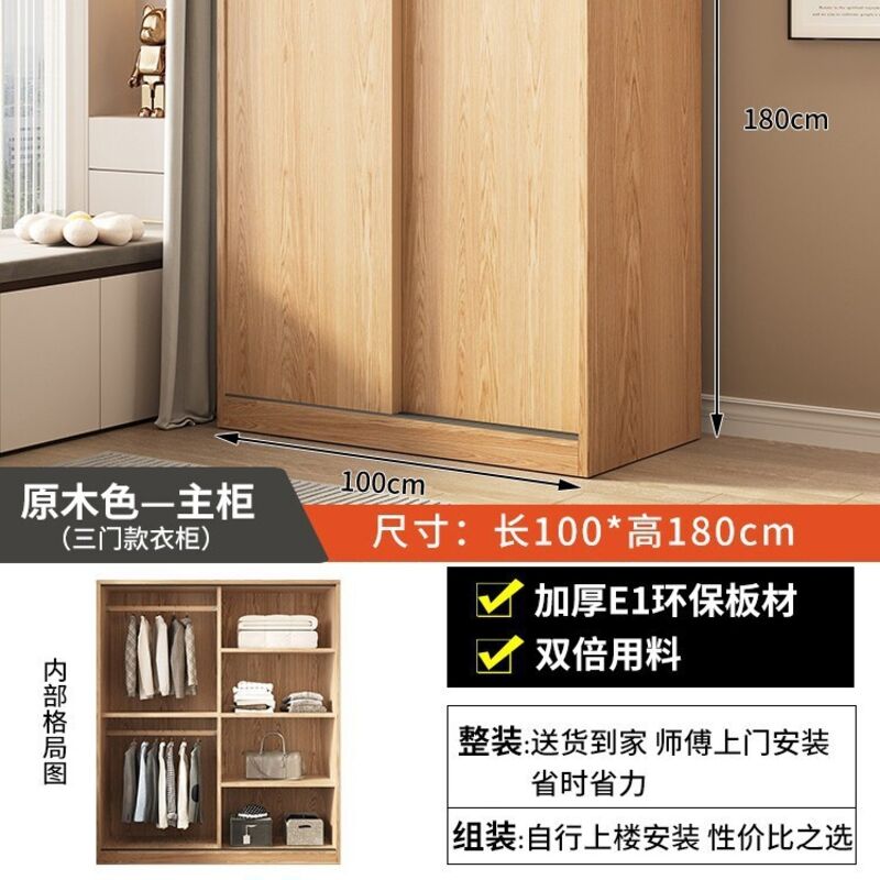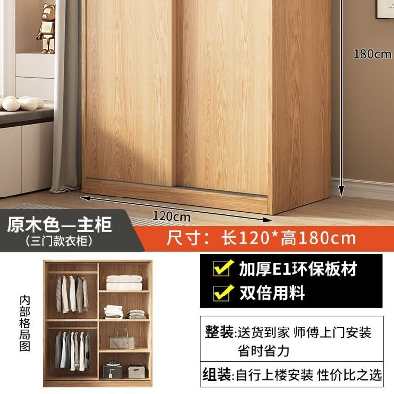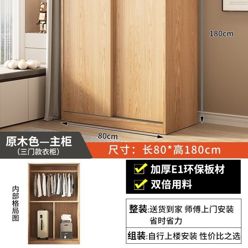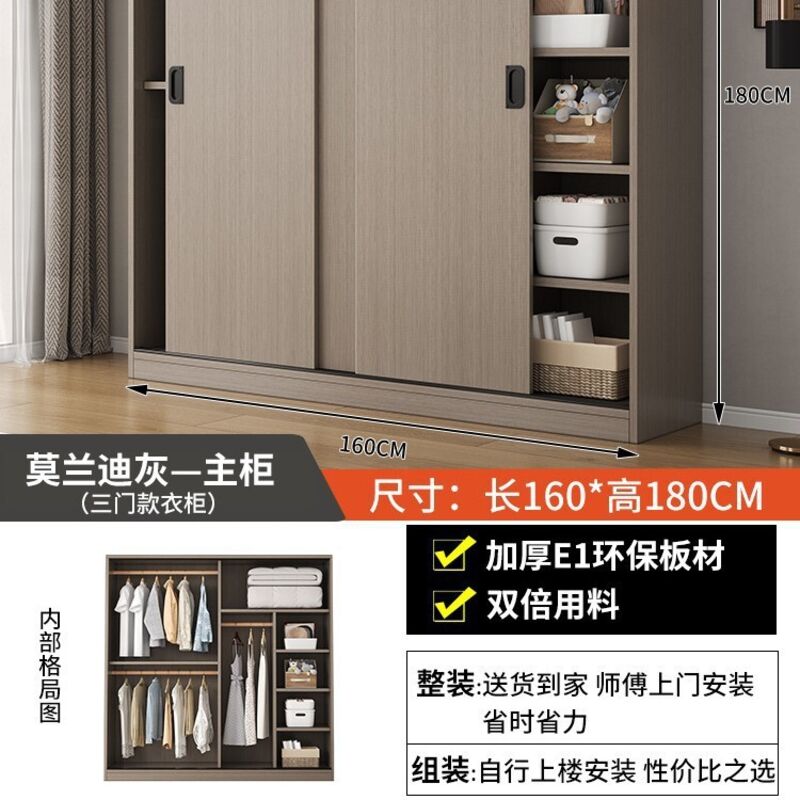 免運 免稅 推拉門簡易衣櫃家用臥室木質經濟出租房小戶型收納儲物掛衣櫥