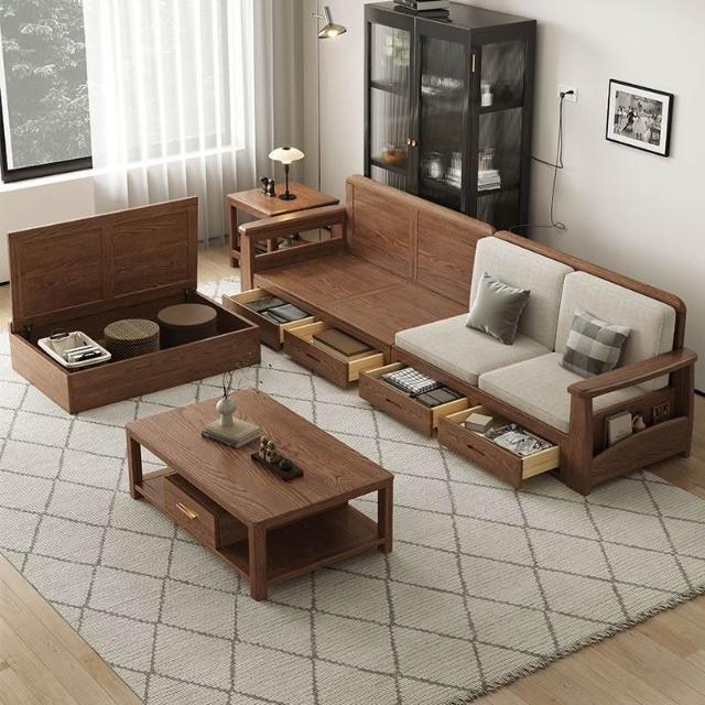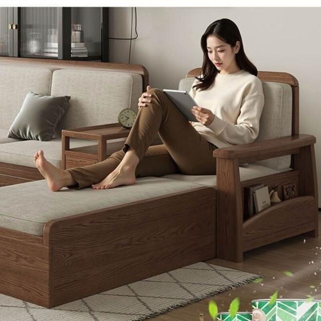 免運 免稅 白蠟木沙發實木沙發客廳L型沙發組合大小戶型兩用儲物沙發帶抽屜