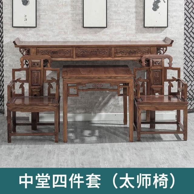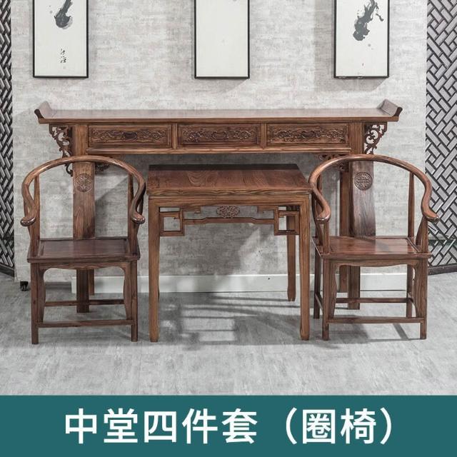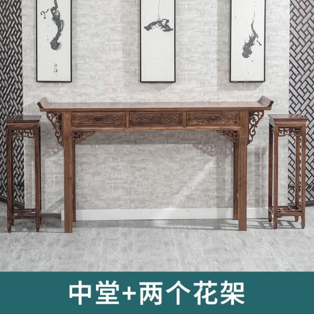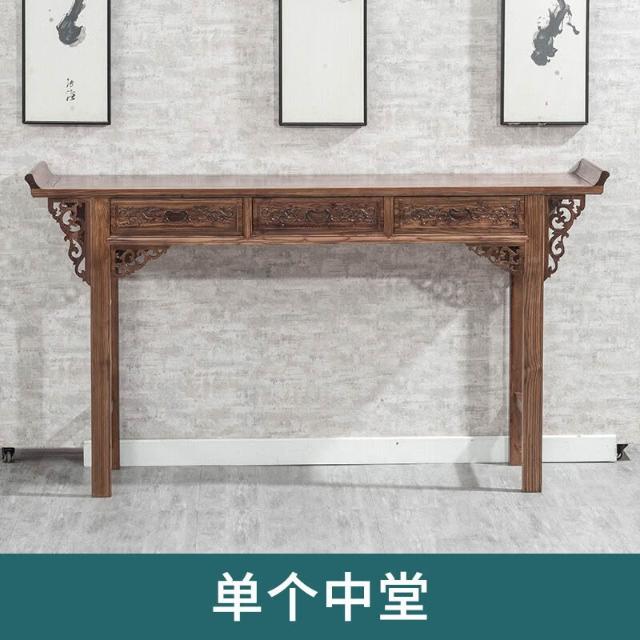免運 免稅 實木中堂條案六件套榆木太師椅八仙桌仿古四件套農村佛堂供桌佛臺