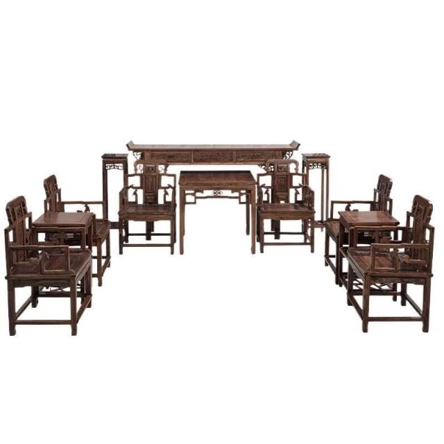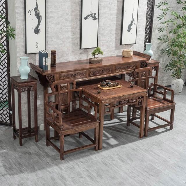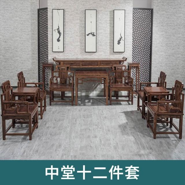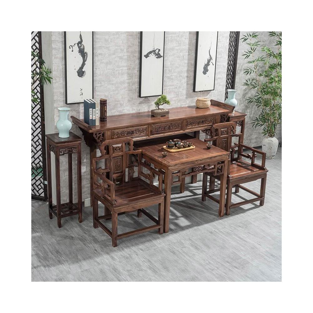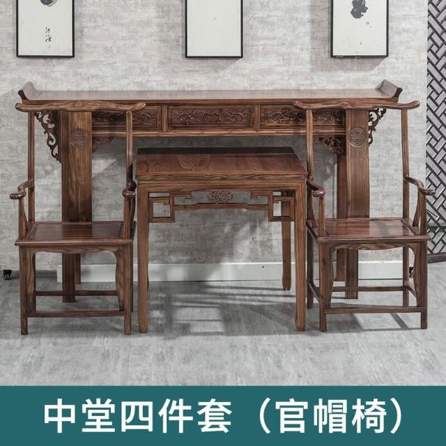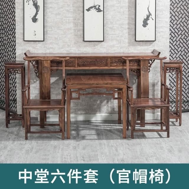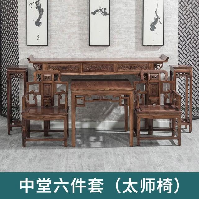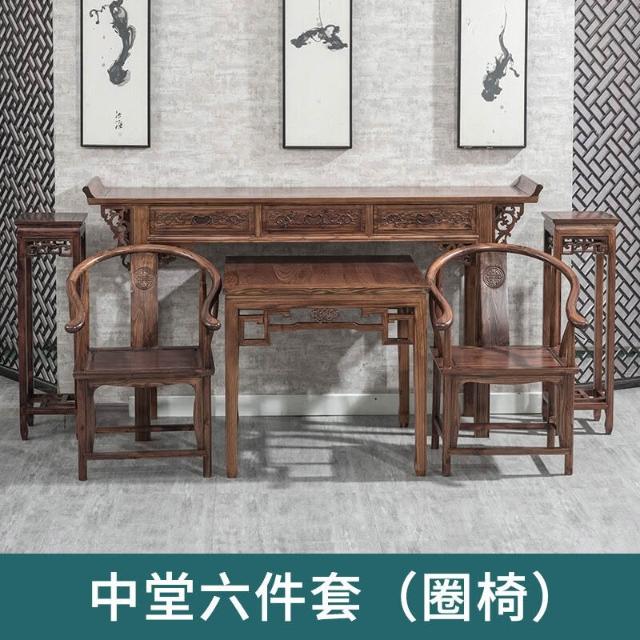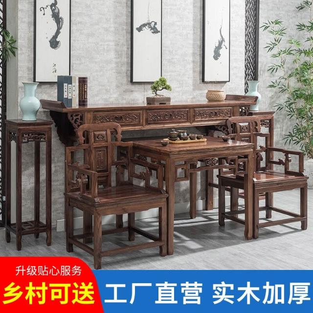 免運 免稅 實木中堂條案六件套榆木太師椅八仙桌仿古四件套農村佛堂供桌佛臺