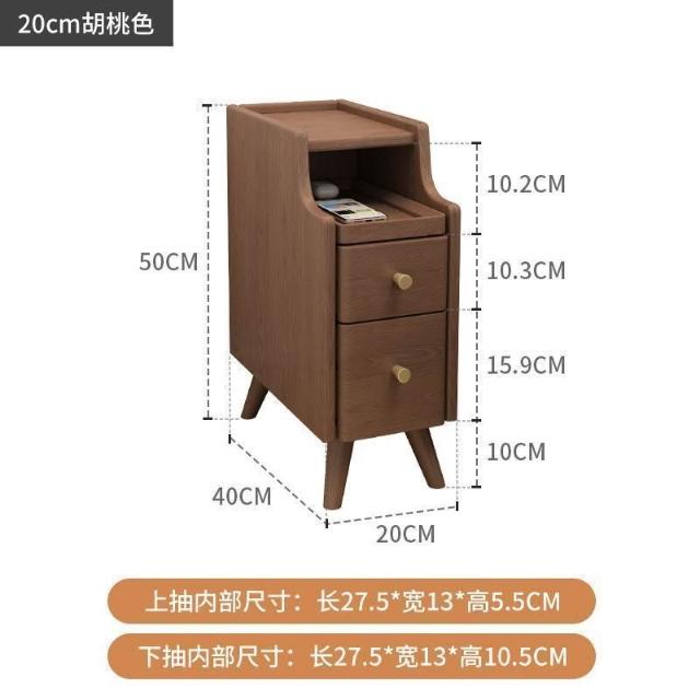 免運 免稅 床頭櫃純全實木胡桃色小型超窄邊櫃小戶型臥室床邊收納儲物櫃25CM