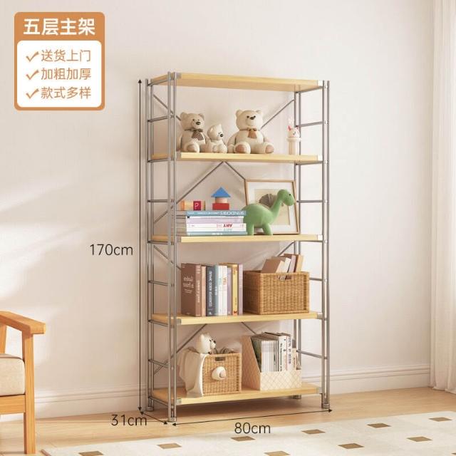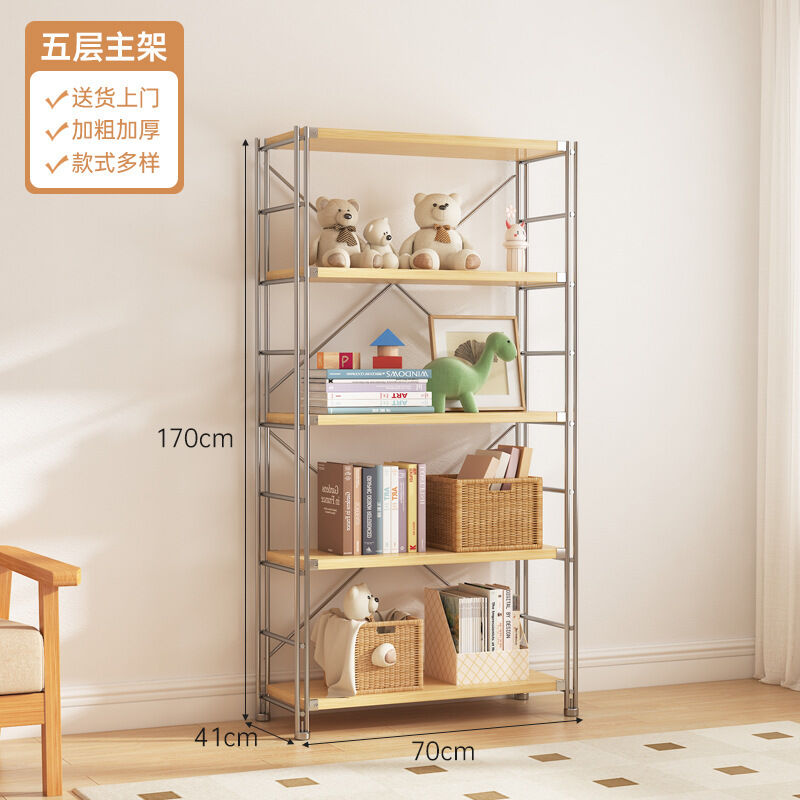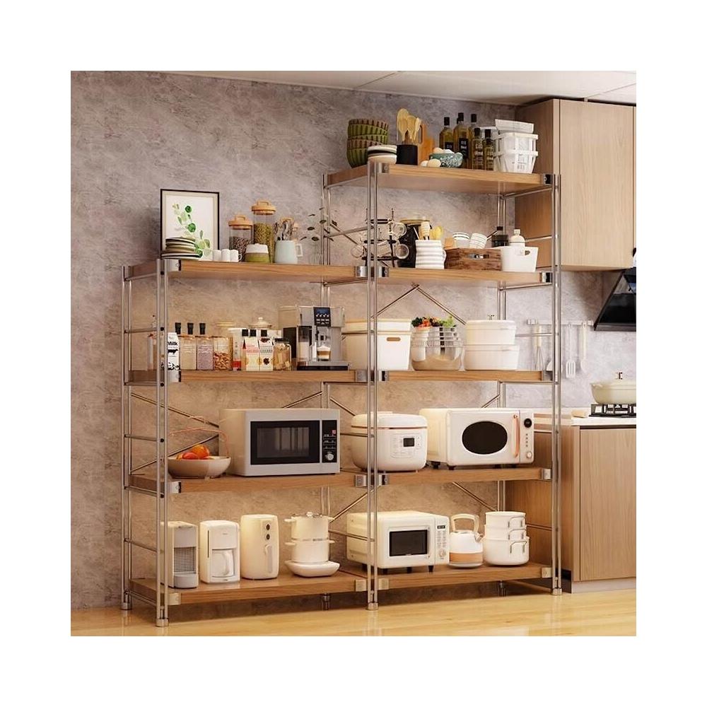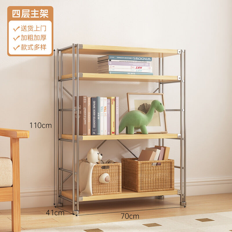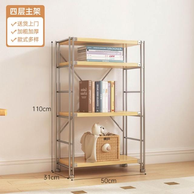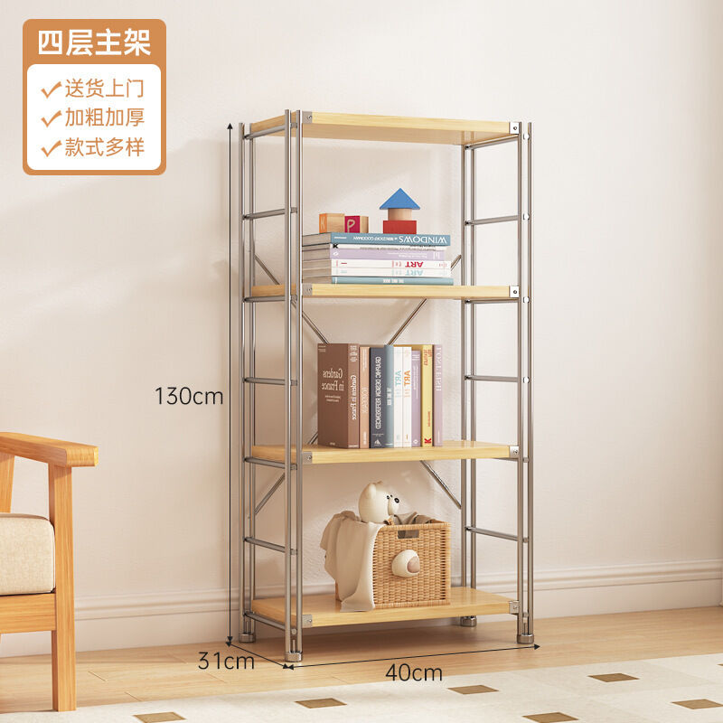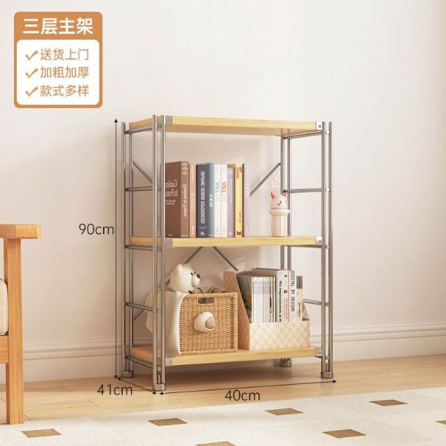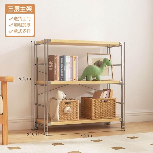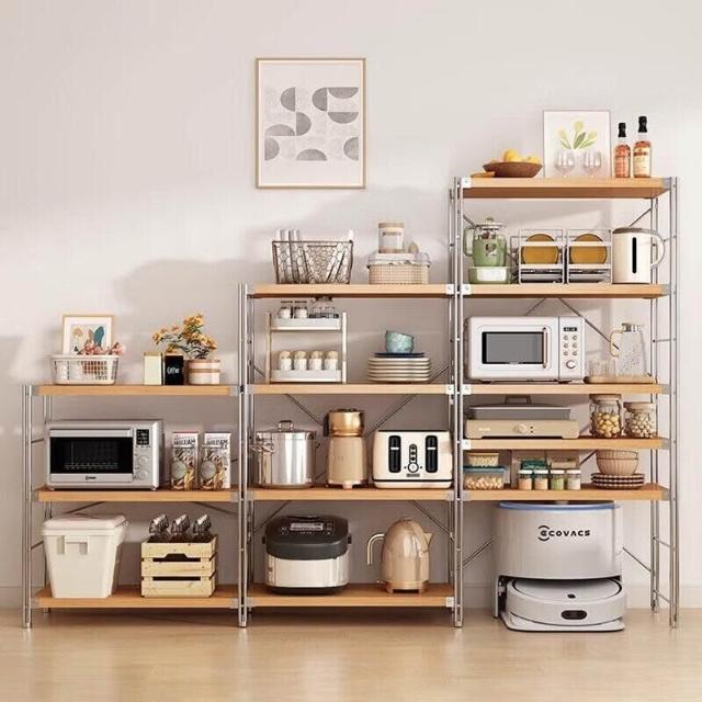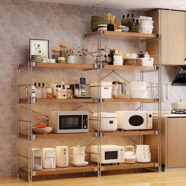 工廠直髮 原木風落地多層置物架日式廚房微波爐收納架家用儲物架書架