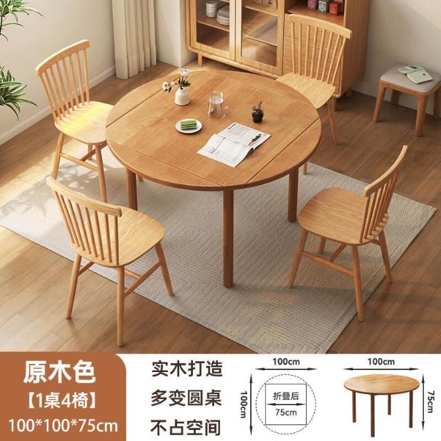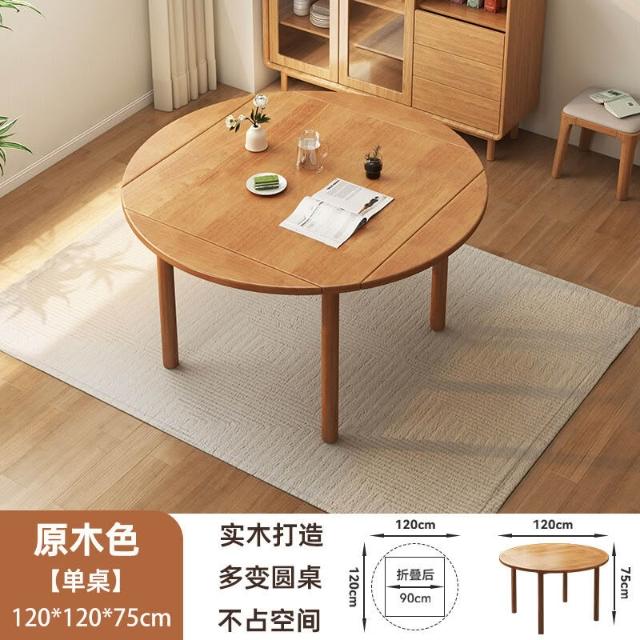 免運 免稅 實木折疊餐桌小戶型家用方桌可變圓桌圓形餐廳伸縮桌子