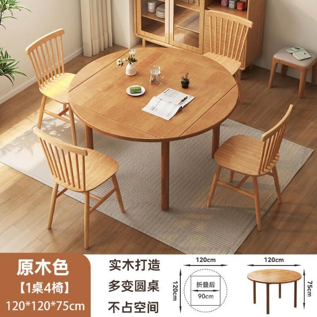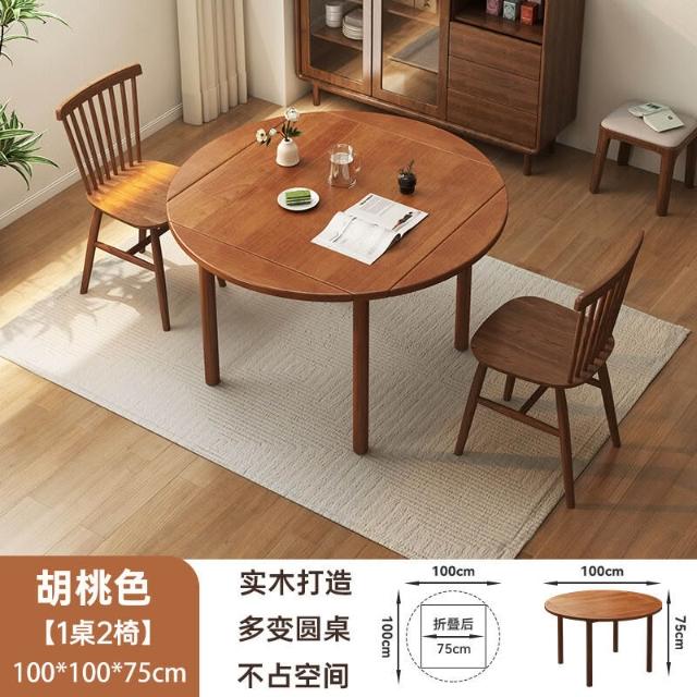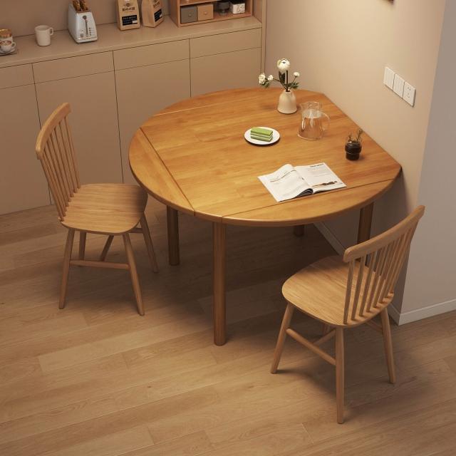 免運 免稅 實木折疊餐桌小戶型家用方桌可變圓桌圓形餐廳伸縮桌子