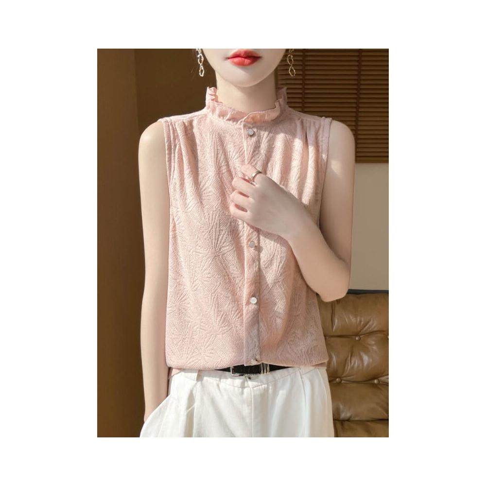 沂洋商城 花邊領法式打底背心 女氣質木耳邊立領 疊穿內搭新款無袖襯衫衣 花苞