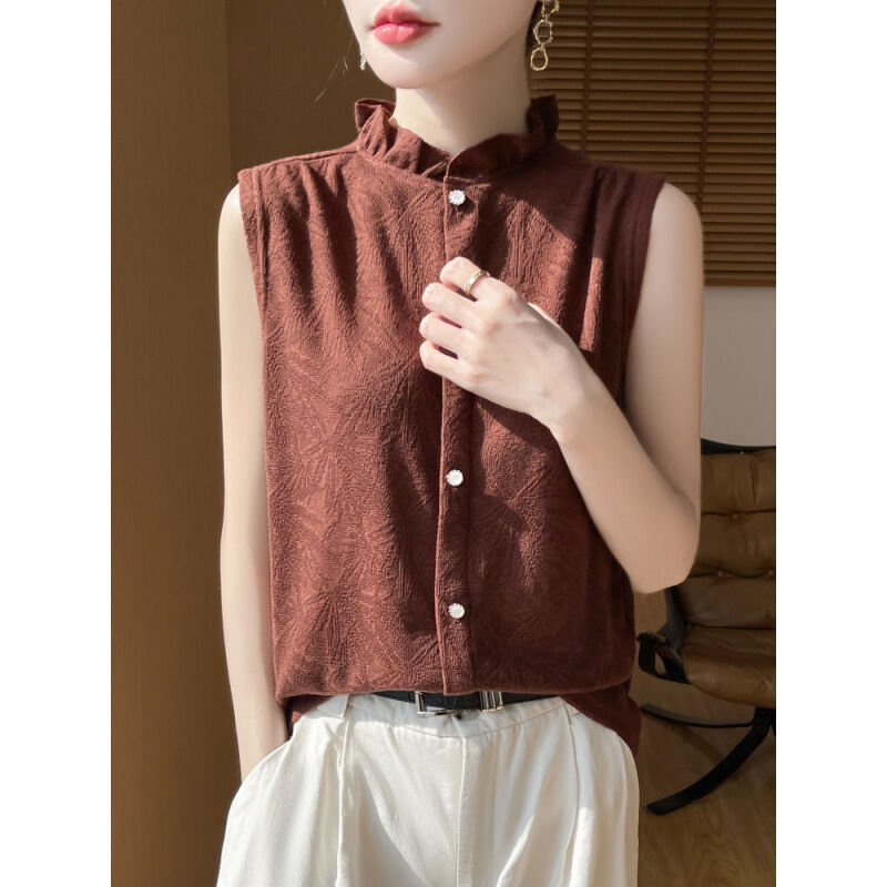 沂洋商城 花邊領法式打底背心 女氣質木耳邊立領 疊穿內搭新款無袖襯衫衣 花苞