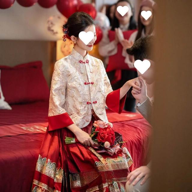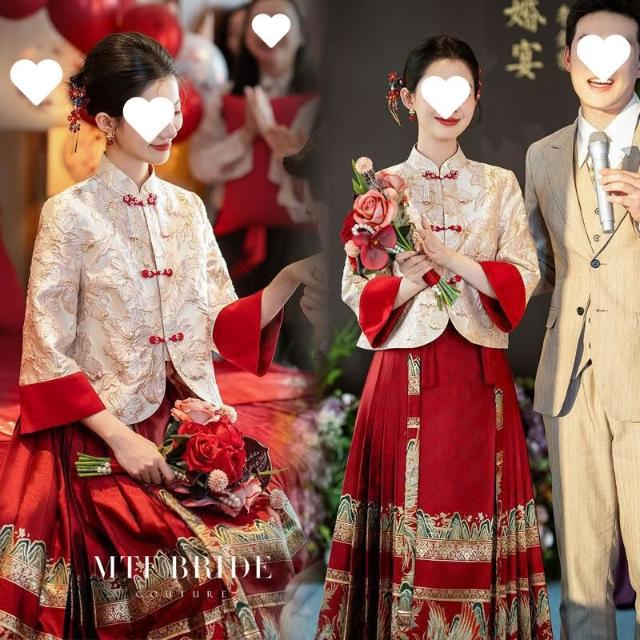 新中式上衣女馬面裙套裝婚服春夏漢服大碼胖敬酒服訂婚禮服裙