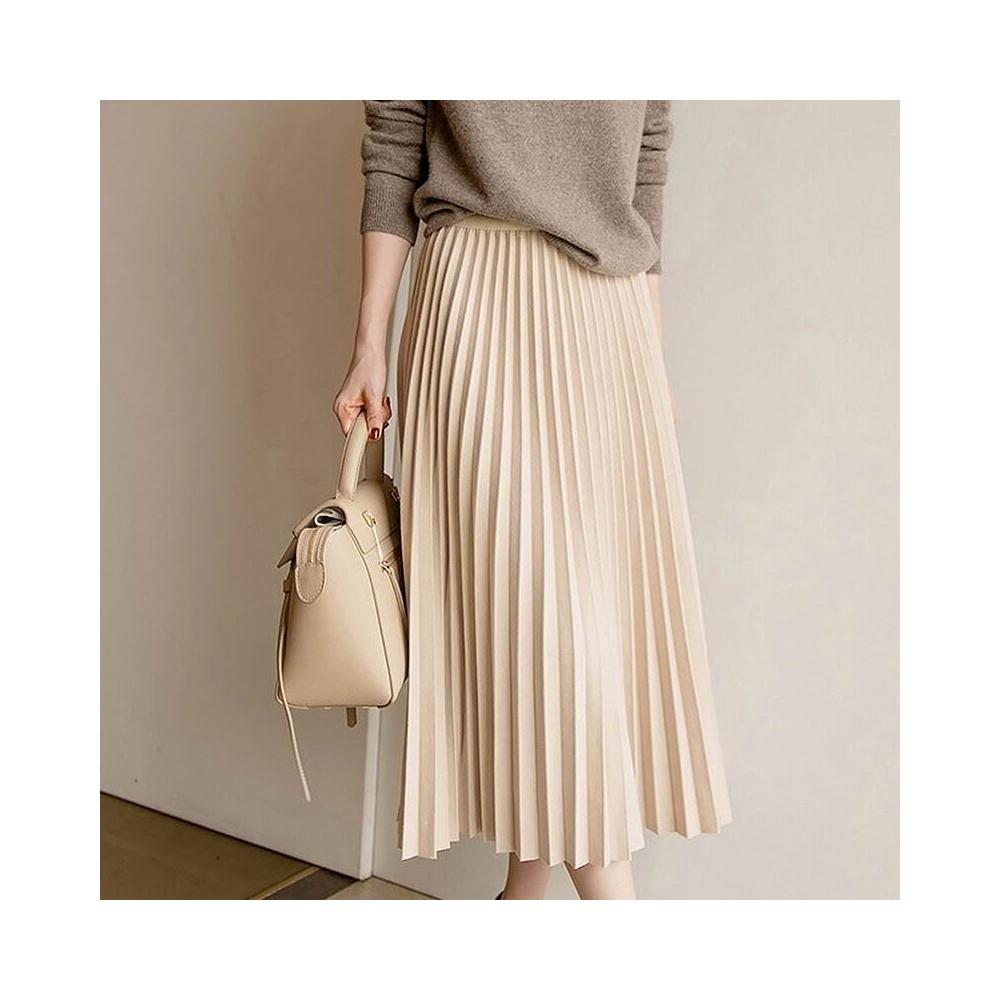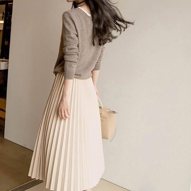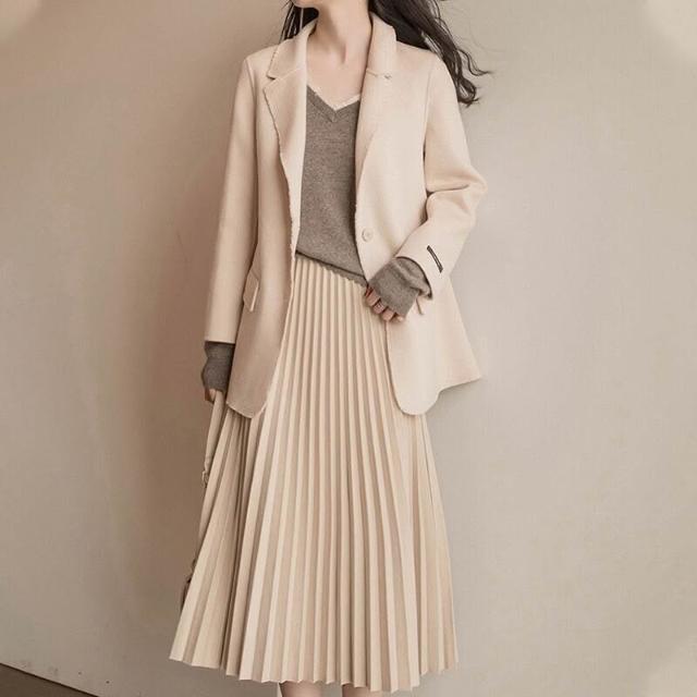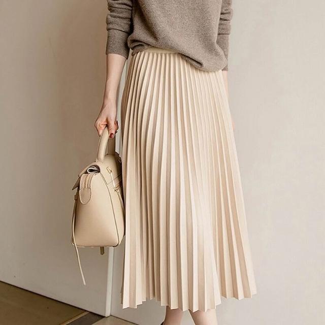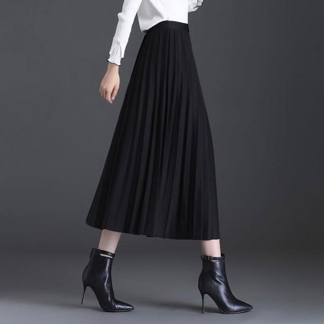 杏色毛呢半身裙女百褶裙秋冬中長款高腰顯瘦冬天配毛衣輕熟風琴裙