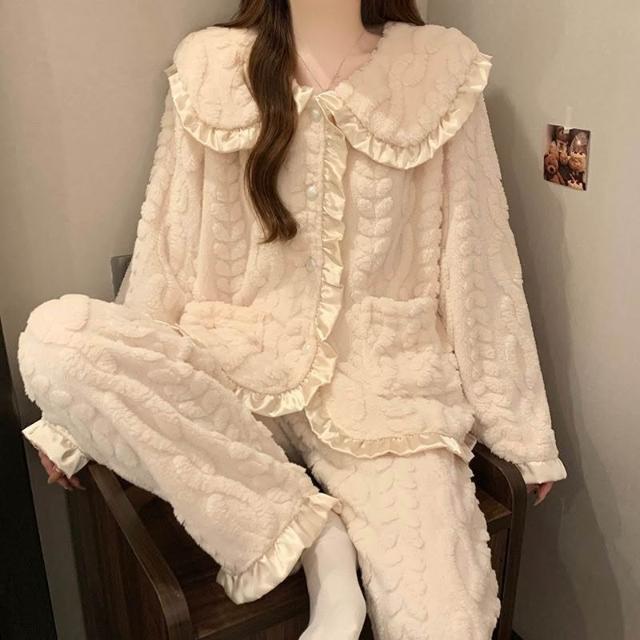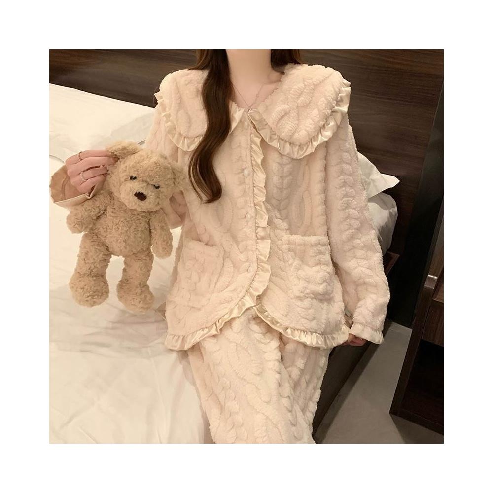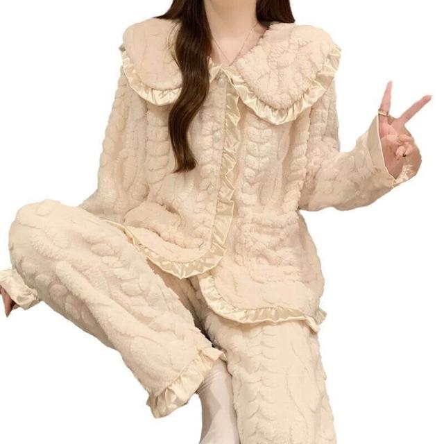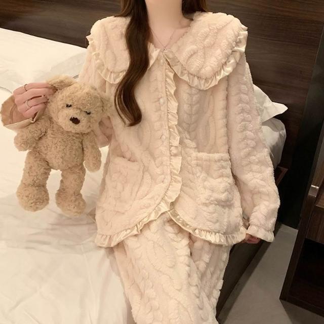 沂洋商城 新款珊瑚絨睡衣女秋冬季可愛法蘭絨保暖加厚甜美家居服秋冬款套裝