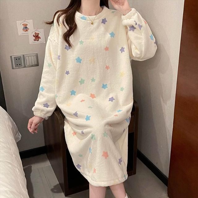 沂洋商城 冬天加厚保暖珊瑚絨2025新款睡衣女士秋冬季睡裙寬松法蘭絨家居服