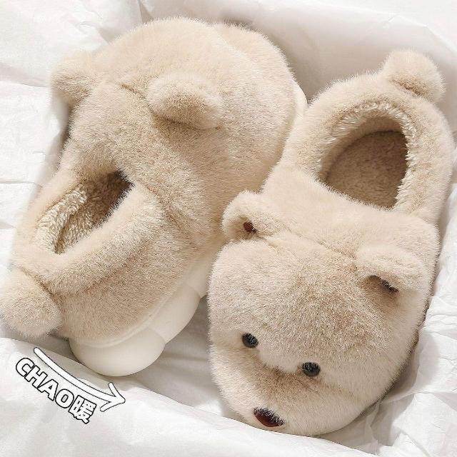 沂洋商城 小熊棉拖鞋女秋冬季2025新款室內防滑家用保暖情侶可愛毛絨棉鞋女