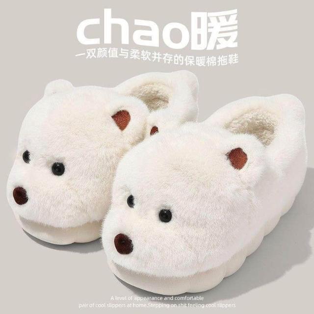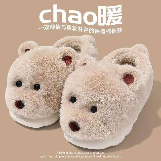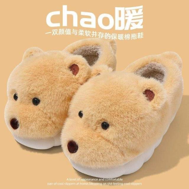沂洋商城 小熊棉拖鞋女秋冬季2025新款室內防滑家用保暖情侶可愛毛絨棉鞋女