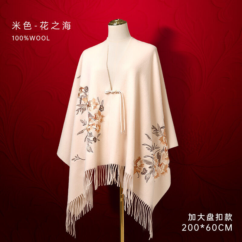沂洋商城 羊毛圍巾披肩兩用羊絨禮盒中秋節禮物送長輩冬季女旗袍外搭送媽媽