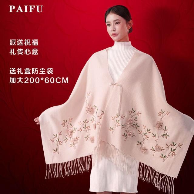 沂洋商城 羊毛圍巾披肩兩用羊絨禮盒中秋節禮物送長輩冬季女旗袍外搭送媽媽