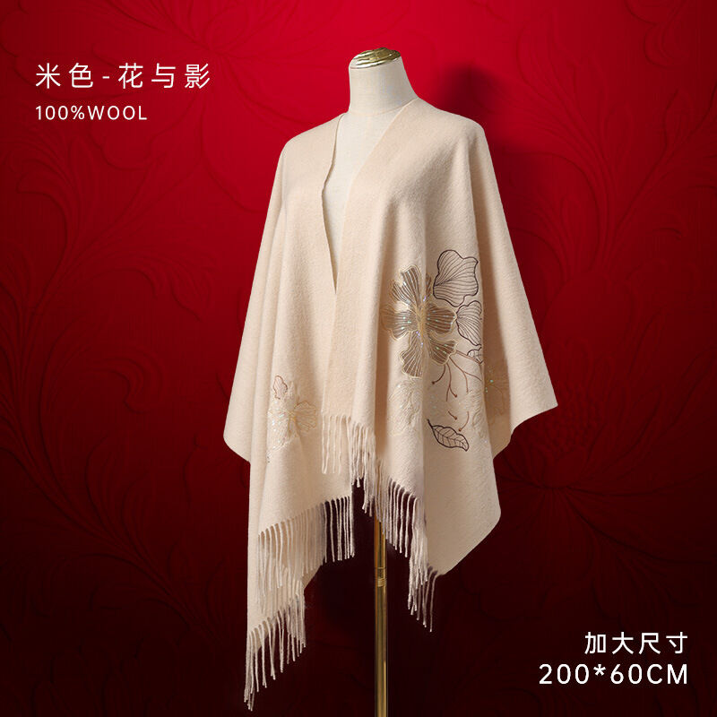 沂洋商城 羊毛圍巾披肩兩用羊絨禮盒中秋節禮物送長輩冬季女旗袍外搭送媽媽