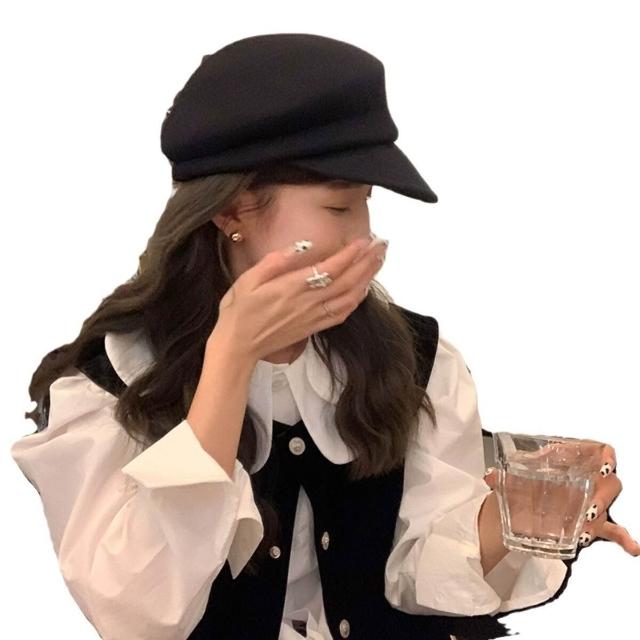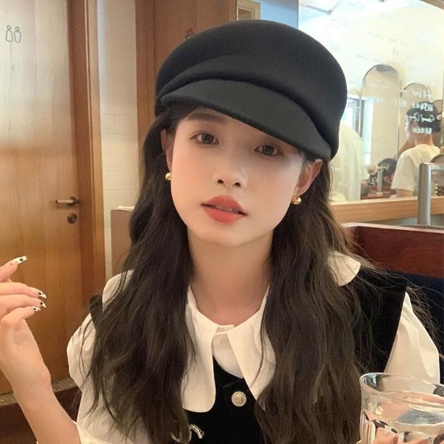 沂洋商城 秋冬澳洲羊毛軍帽女顯臉小光板簡約百搭不對稱八角帽毛呢貝雷帽子