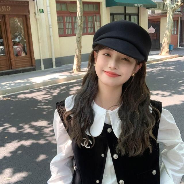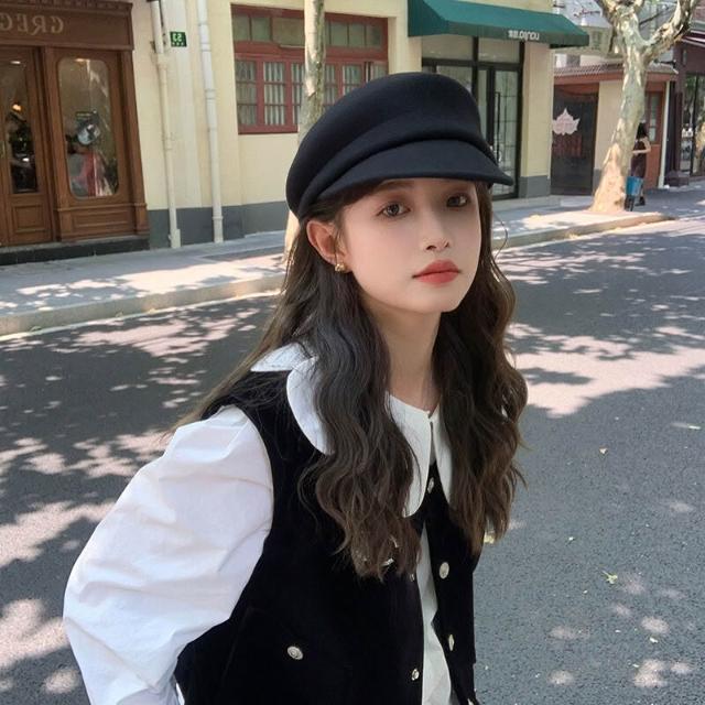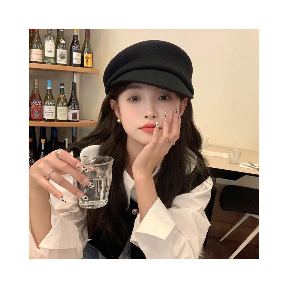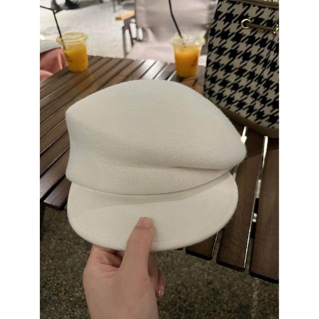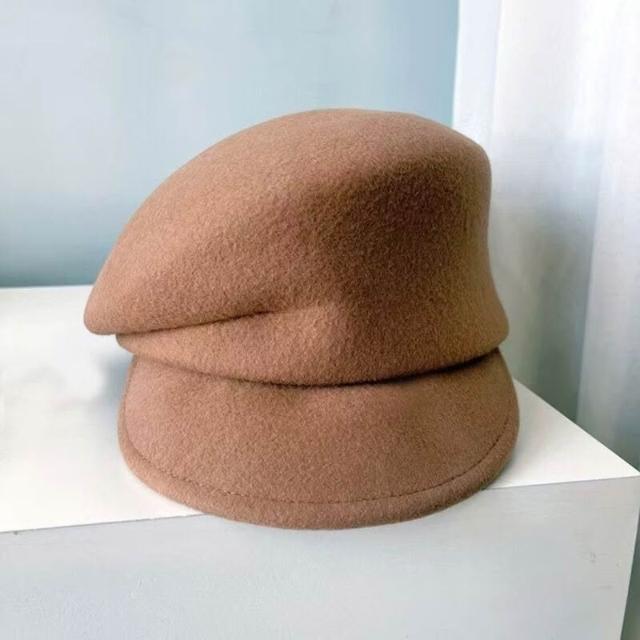 沂洋商城 秋冬澳洲羊毛軍帽女顯臉小光板簡約百搭不對稱八角帽毛呢貝雷帽子