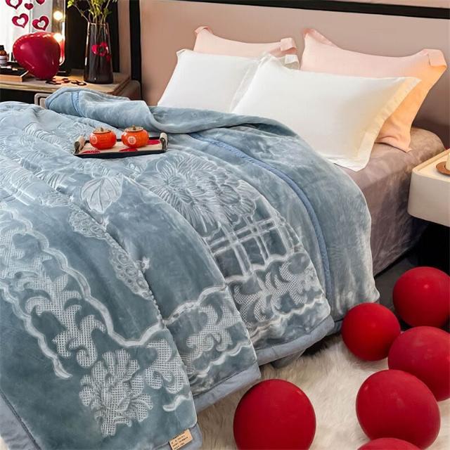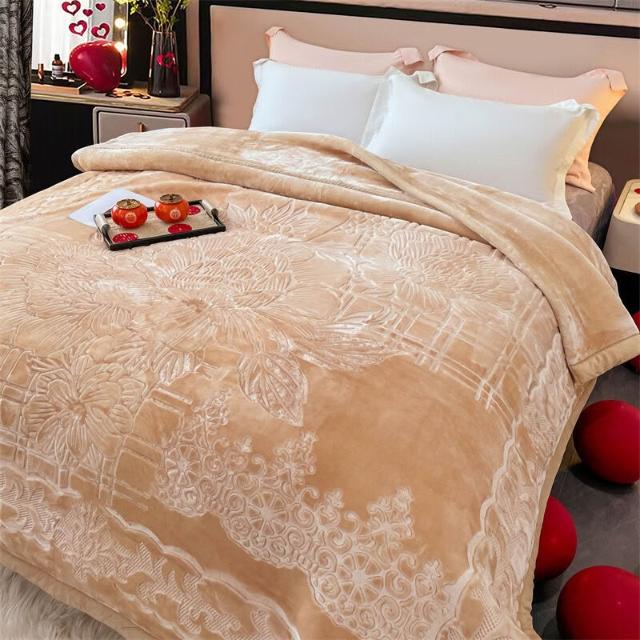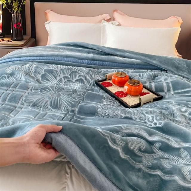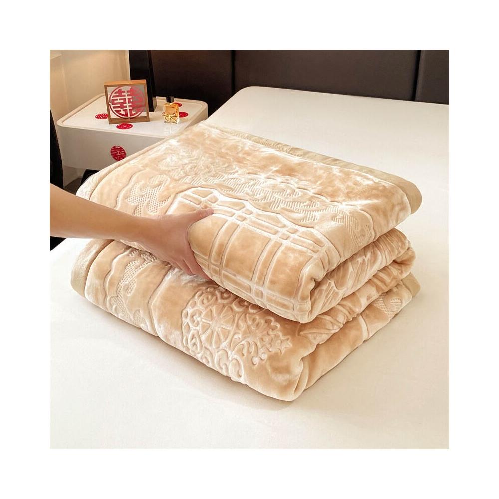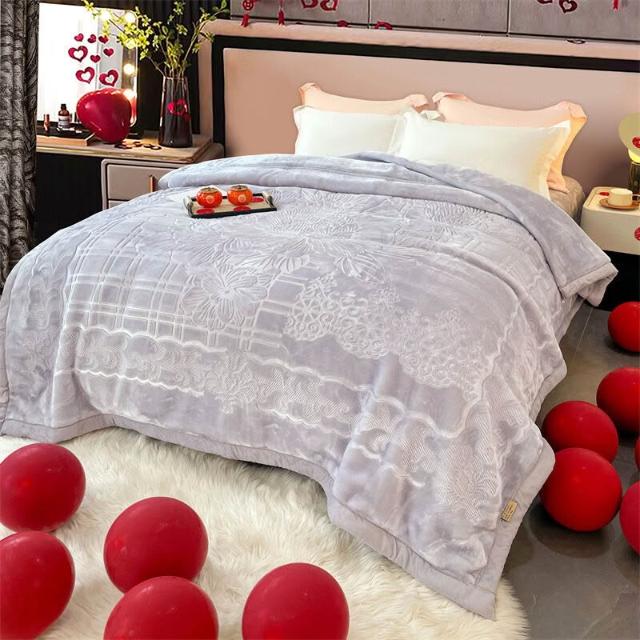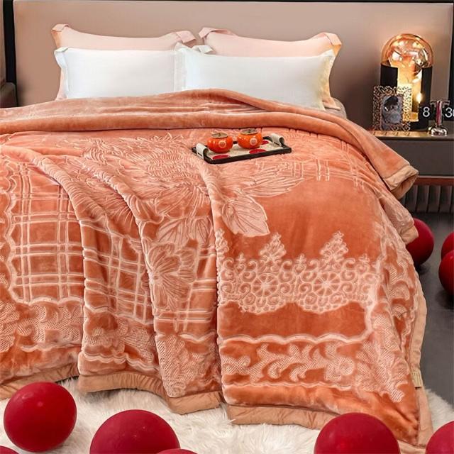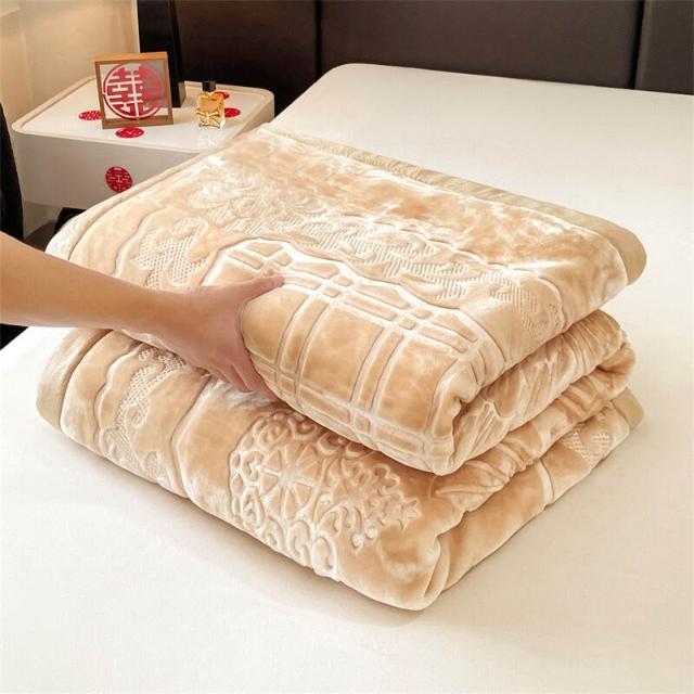 沂洋商城 高端送禮陪嫁加厚毛毯10斤壓花純色家用牛奶絨珊瑚絨秋冬保暖毛毯