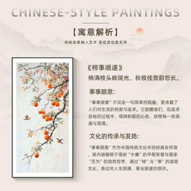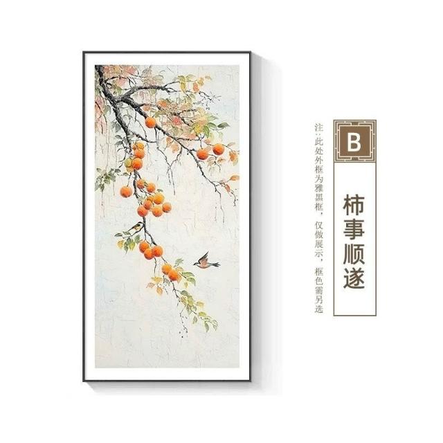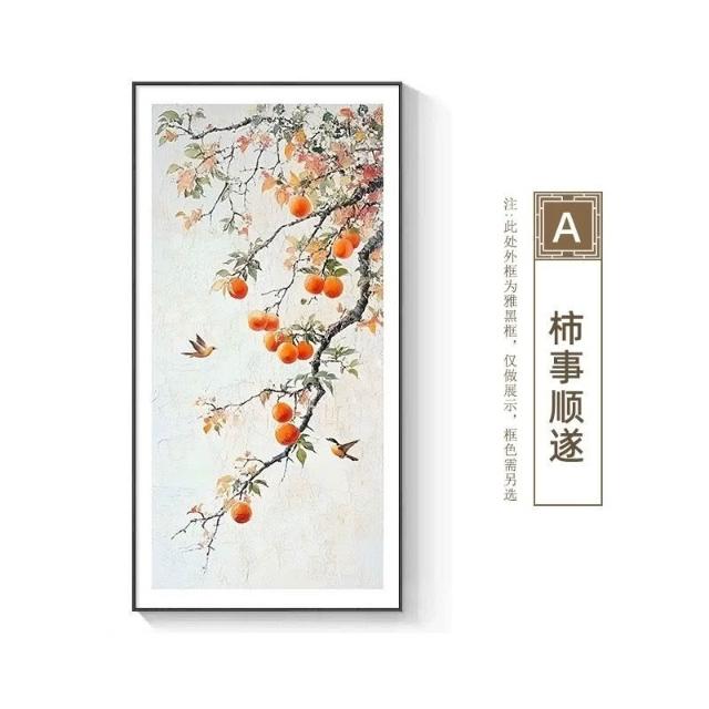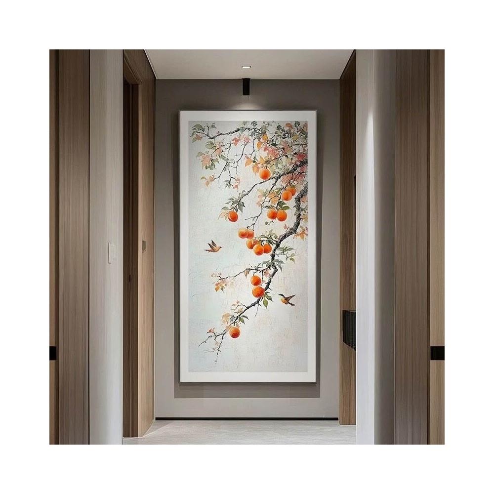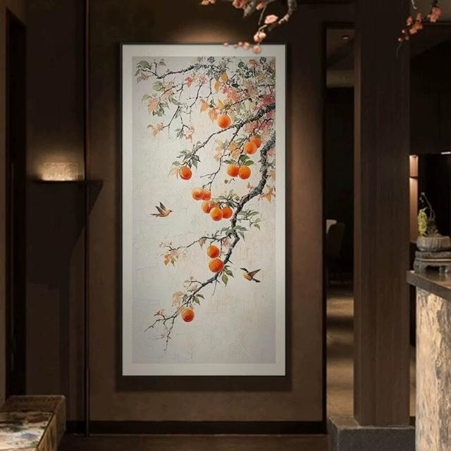 沂洋商城 柿柿如意玄關裝飾畫入戶走廊過道掛畫新中式客廳正對門噴繪壁畫畫