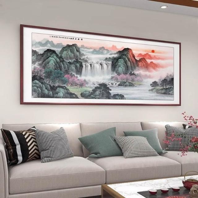 沂洋商城 紫氣東來掛畫客廳東墻山水畫中式沙發背景墻裝飾畫靠山辦公室壁畫