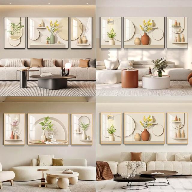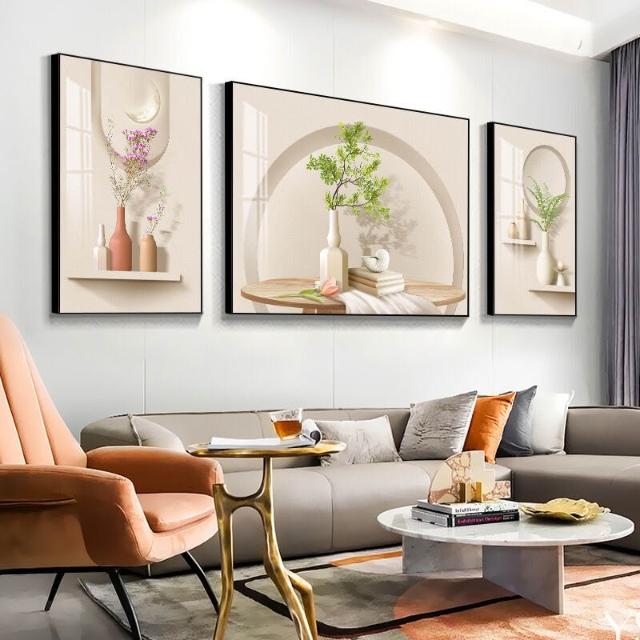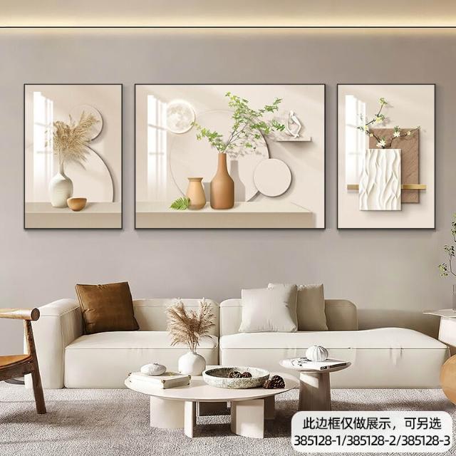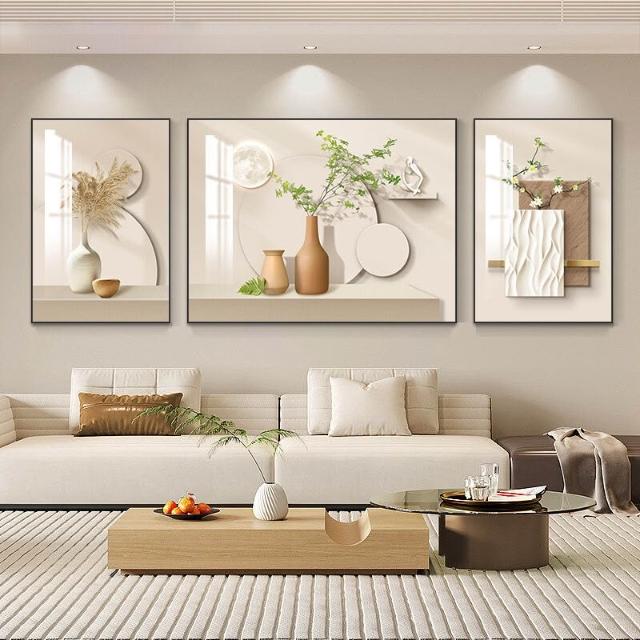 沂洋商城 奶油風客廳裝飾畫高級感簡約沙發背景墻掛畫北歐清新抽象三聯壁畫