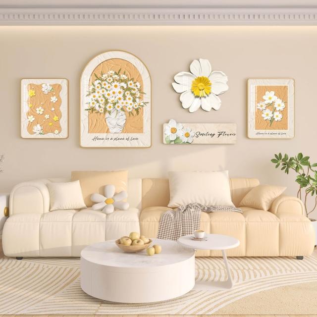 沂洋商城 奶油風客廳掛畫北歐沙發背景墻裝飾畫高級感大氣花卉綠植壁畫組合