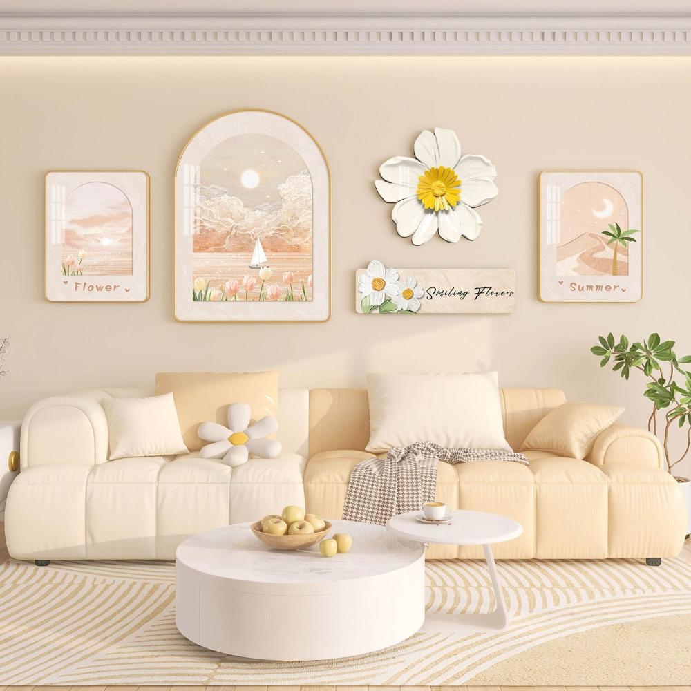 沂洋商城 奶油風客廳掛畫北歐沙發背景墻裝飾畫高級感大氣花卉綠植壁畫組合