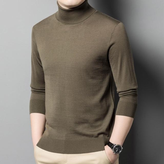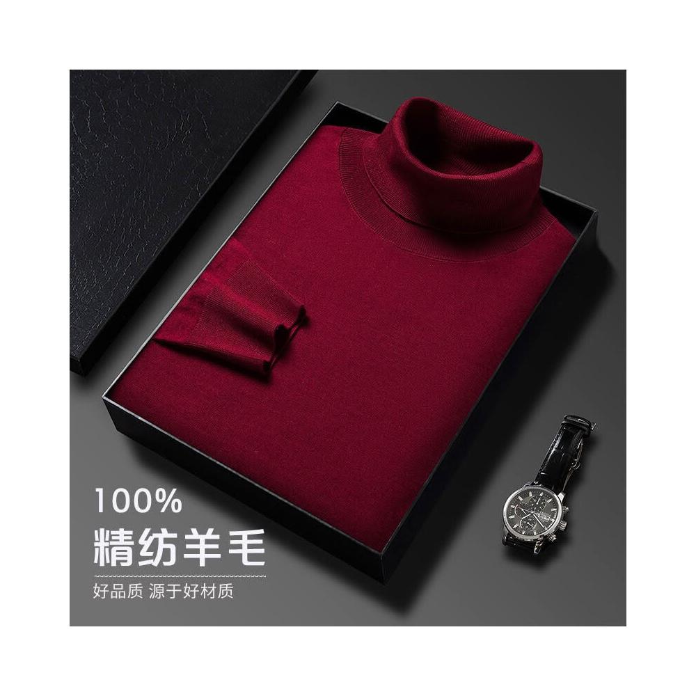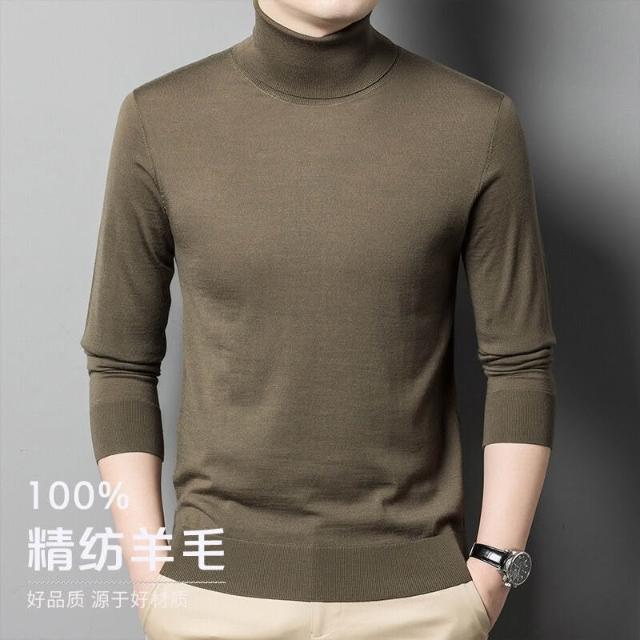 沂洋商城 可機洗精紡羊毛衫雙翻領男士100%全羊毛長袖高領針織衫打底毛衣薄
