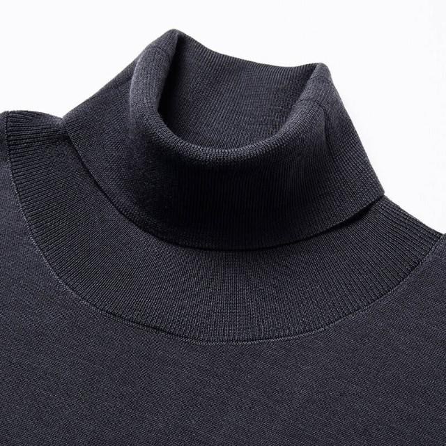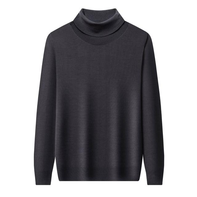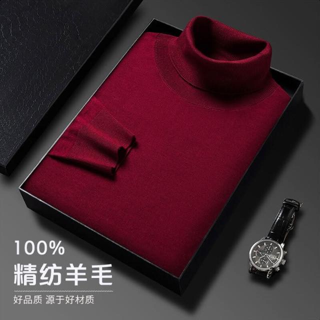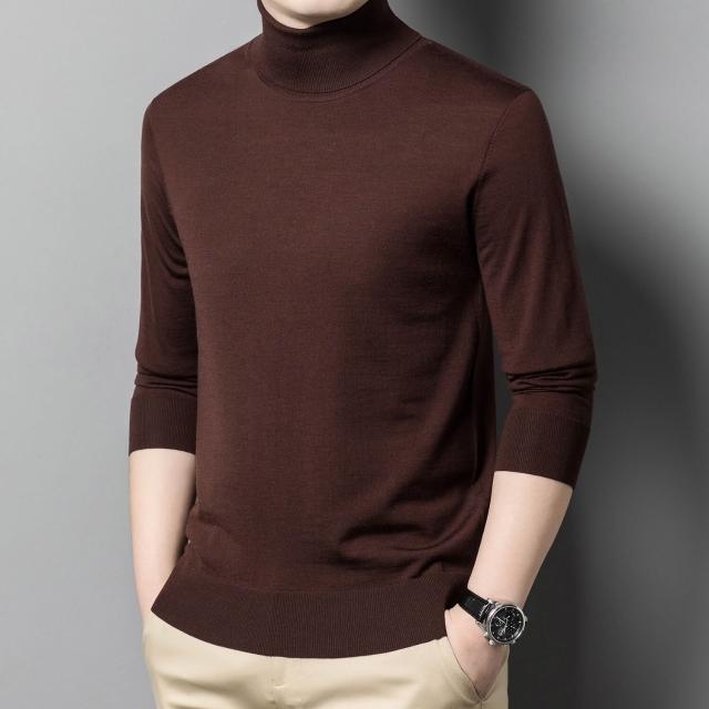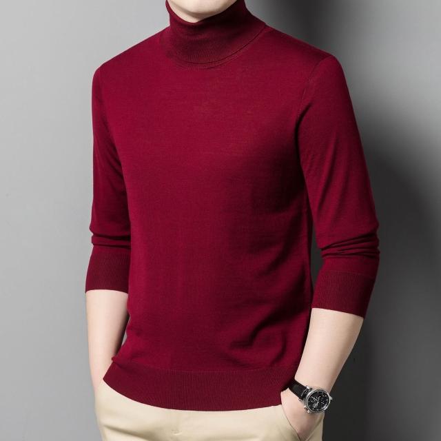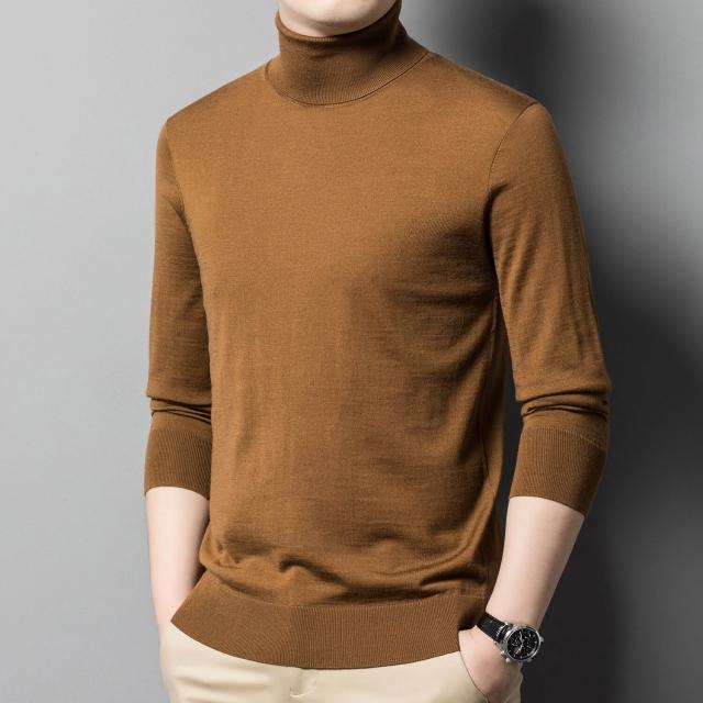 沂洋商城 可機洗精紡羊毛衫雙翻領男士100%全羊毛長袖高領針織衫打底毛衣薄