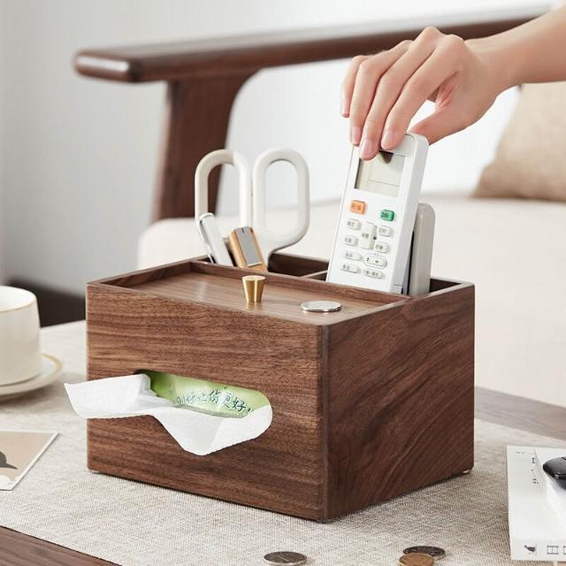 沂洋商城 木質辦公桌文具整理收納盒胡桃木紙巾盒家用客廳茶幾遙控器收納盒