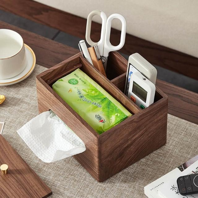 沂洋商城 木質辦公桌文具整理收納盒胡桃木紙巾盒家用客廳茶幾遙控器收納盒