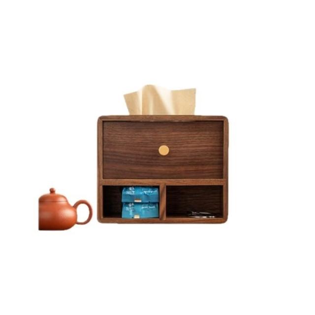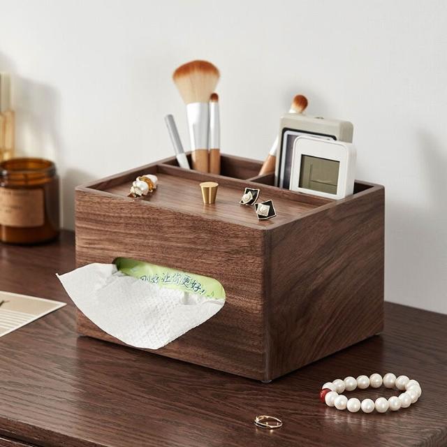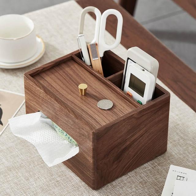 沂洋商城 木質辦公桌文具整理收納盒胡桃木紙巾盒家用客廳茶幾遙控器收納盒