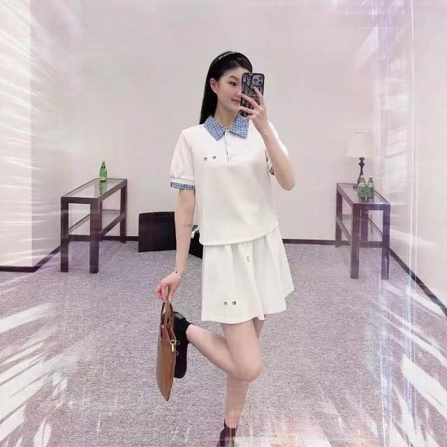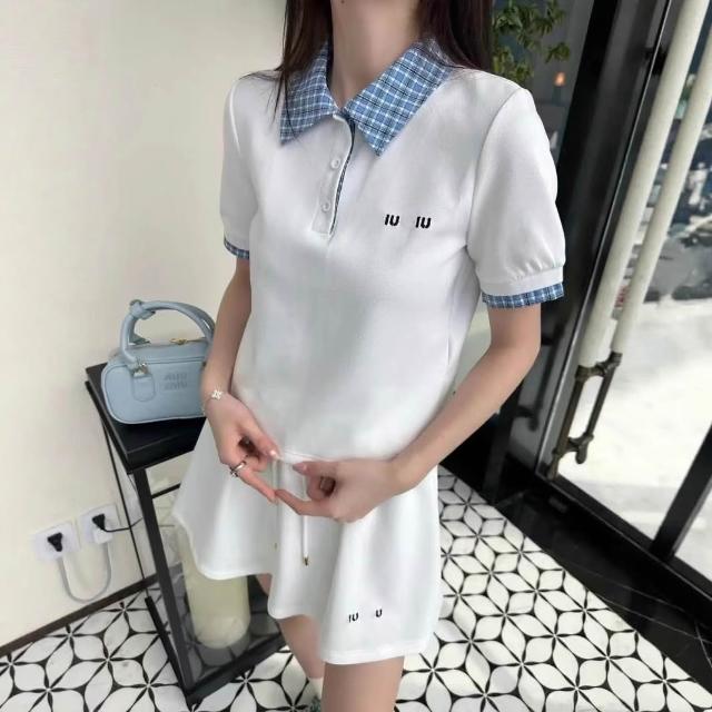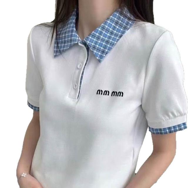 短袖 T恤 上衣 miumiu家拼接短袖女polo領女休閑t恤女立體刺繡2025新款日韓休閑 沂洋商城