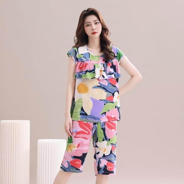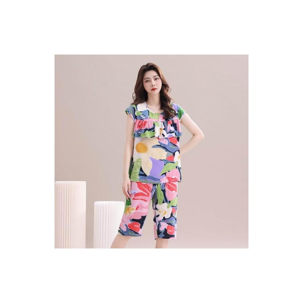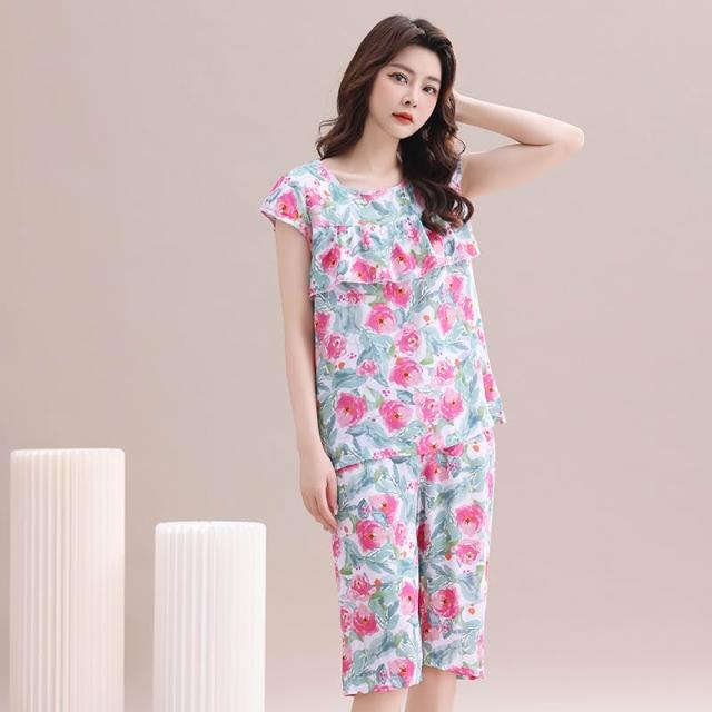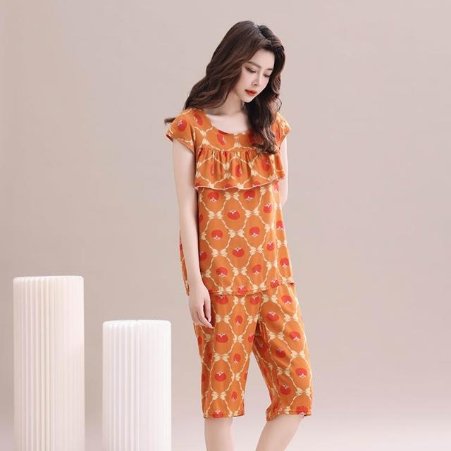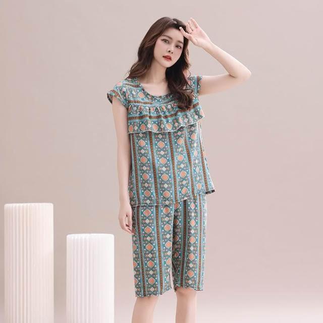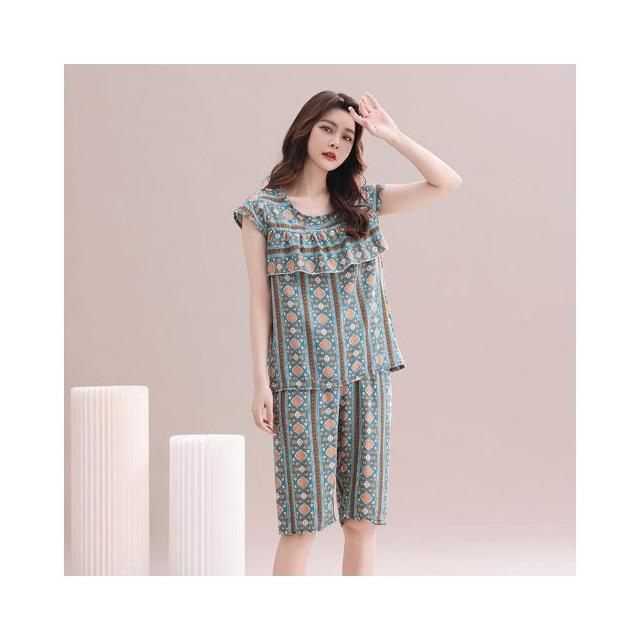 春夏睡衣 居家服 棉綢短袖七分褲套裝女夏外穿人造棉媽媽裝上檔次防凸點家居服夏季 沂洋商城